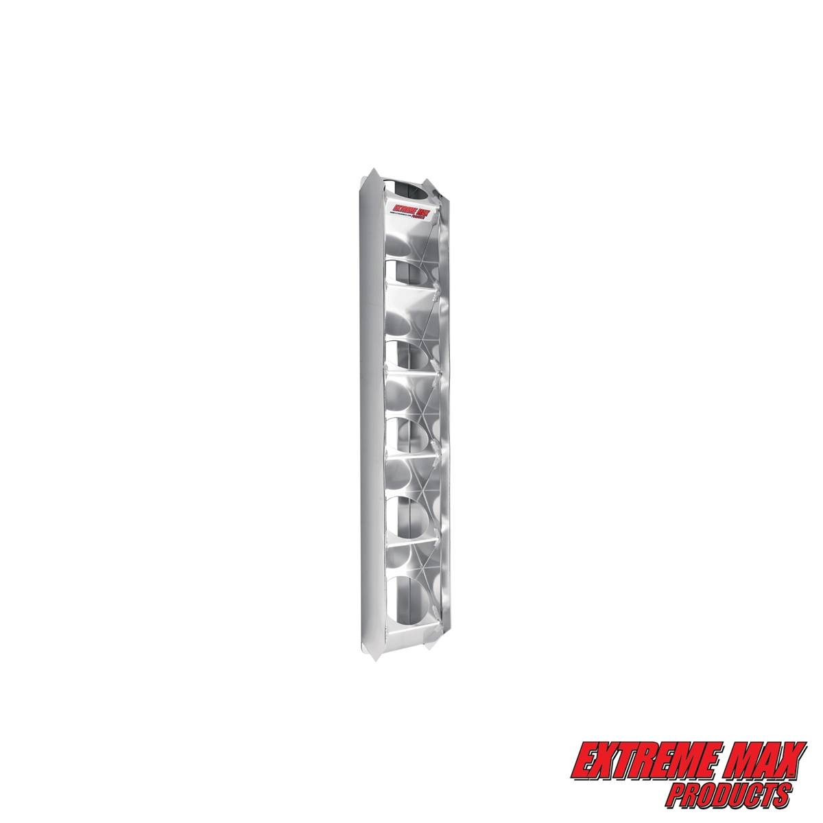 Store your aerosol cans securely within your enclosed trailer or garage with the Extreme Max Aluminum Aerosol Storage Shelf. The shelf holds standard 12 oz. to 16 oz. aerosol cans. The open cut-out top design keeps your aerosol cans organized and separated from each other. The shelf features a lightweight aluminum construction with a clean, attractive finish, adding an eye-catching design that accents nearly any shop, garage, or enclosed trailer. Due to the variety of surfaces to which the shelf may be mounted, mounting hardware is not included.