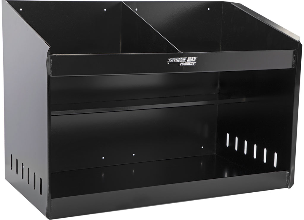 Extreme Max 5001.6331 Deluxe Dual Aluminum Helmet Bay Shelf Holder Storage Cabinet Organizer for Enclosed Race Trailer, Shop, Garage, Storage - Black