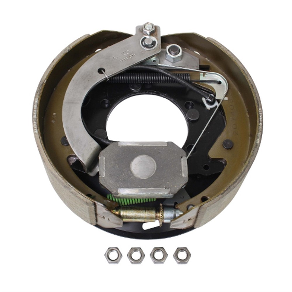 8,000-Lbs Nev-R-Adjust Electric Brake Kit with mounting hardware, adjuster plug, and installation instructions - 12" x 3-3/8" Backing Plate Assembly