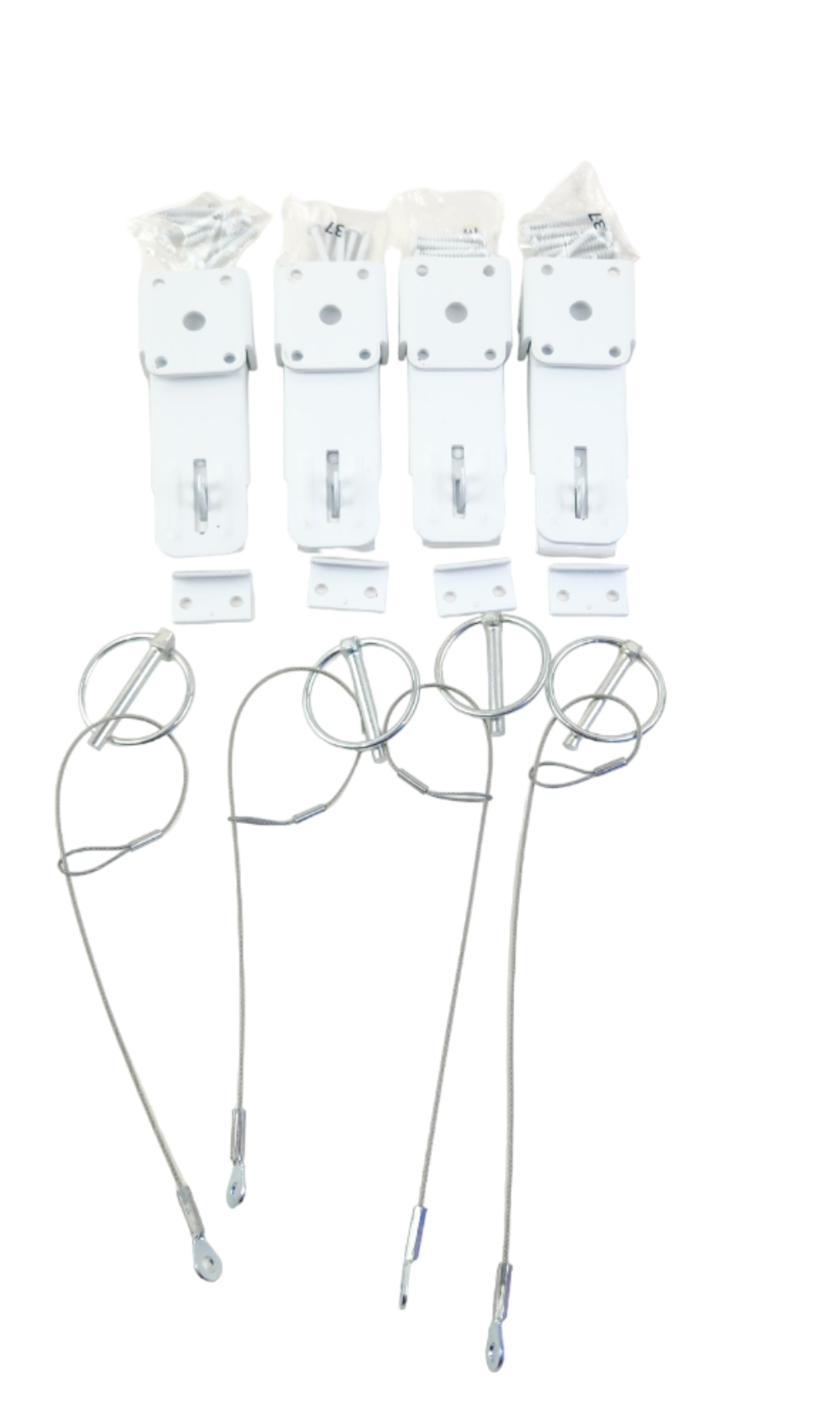 This listing is a camper roof latches kit with safety pin and mounting hardware.