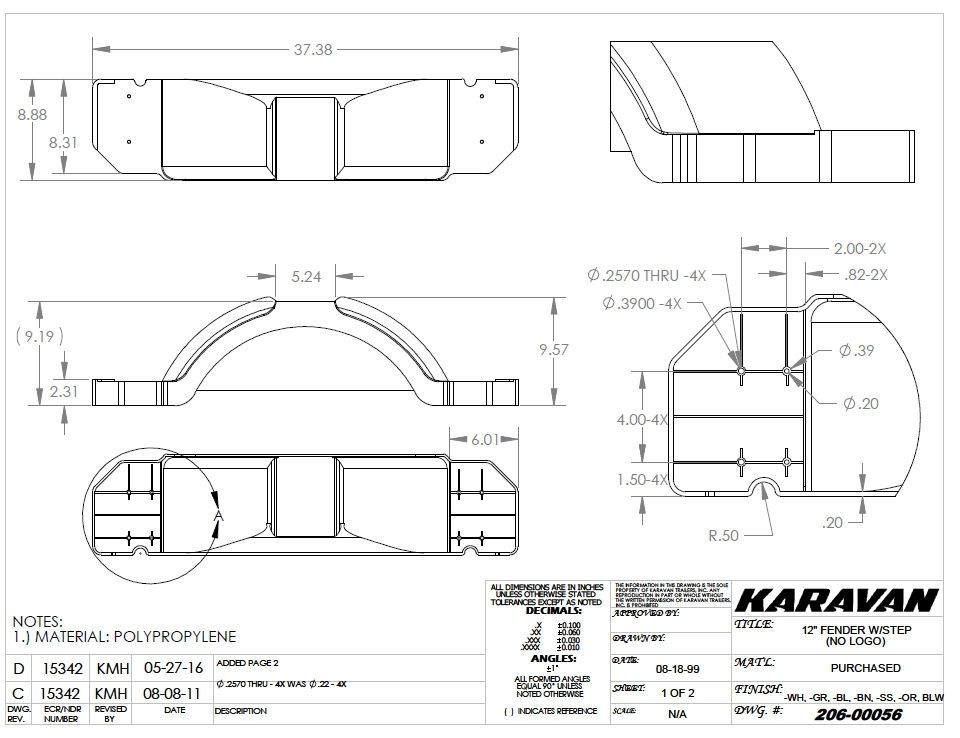 KARAVAN high impact black polycarbonate plastic two step fender with NO light cutout makes it universal. Mounting brackets and hardware not included.