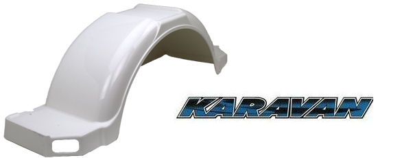 KARAVAN high impact white polycarbonate plastic two step fender with side marker light cutout in the front. Fits single axle trailers with 14" or 15" trailer tires. Mounting brackets and hardware not included.