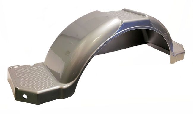 KARAVAN high impact gray polycarbonate plastic two step fender with 3/4" Bullet Light side marker light cutout in the front. Fits single axle trailers with 13" or 14" trailer tires. Mounting brackets and hardware not included.