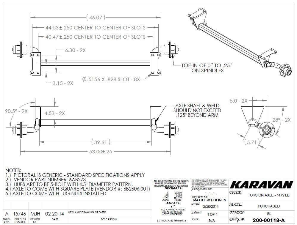 Karavan 200-00118-GL 1500 lb. Torsion Axle wIdler Hubs