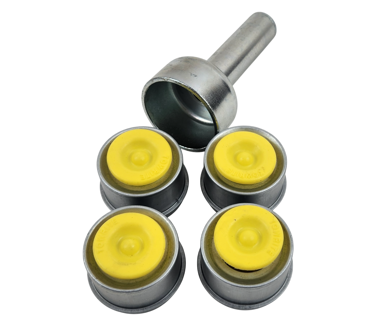 Included in this kit are four EZ-Lube grease caps (dust caps) with Hi-Viz Yellow Plugs. Great for trailer fleets, businesses, and individuals! Instantly know at just a glance when you are missing grease plugs and prevent costly repairs and down time!