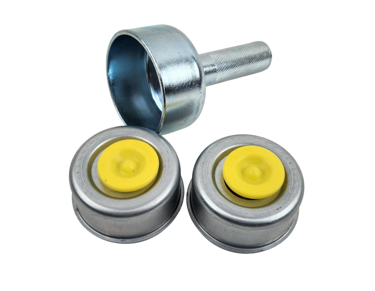 2.72" Trailer Grease Cap Kit w/ Heavy-Duty Install Tool and Hi-Viz EZ-Lube Plugs - 2 PK - Fits 8-Lug Idler Hubs and Brake Drums