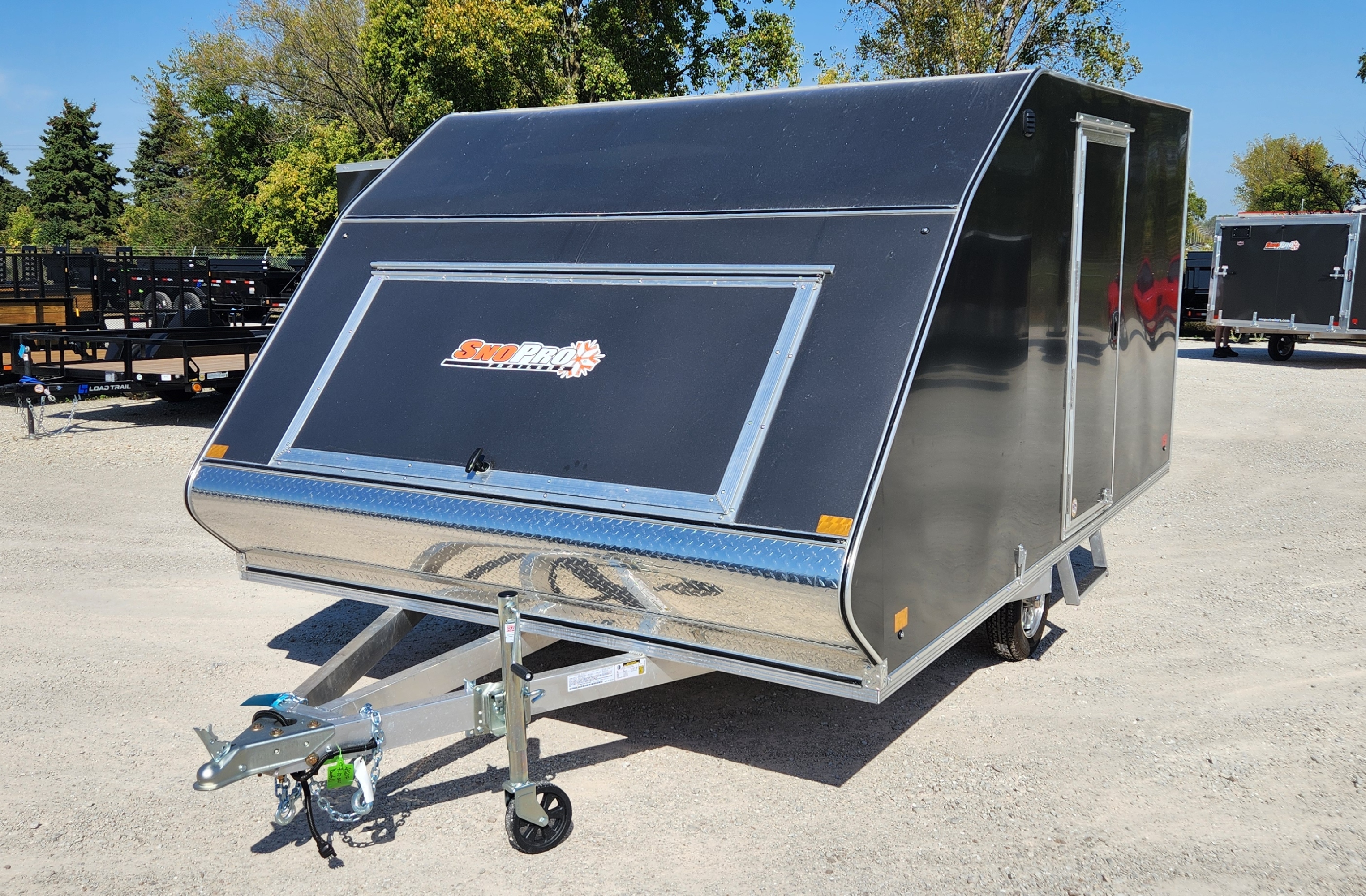 Built on a flat trailer chassis, the SnoPro Hybrid is a fully-enclosed unit with .030” exterior skin and a rear ramp door. Built with a tapered-nose, front access door, and styled after SnoPro's signature cap design, the Hybrid is aerodynamic, extremely lightweight and versatile.