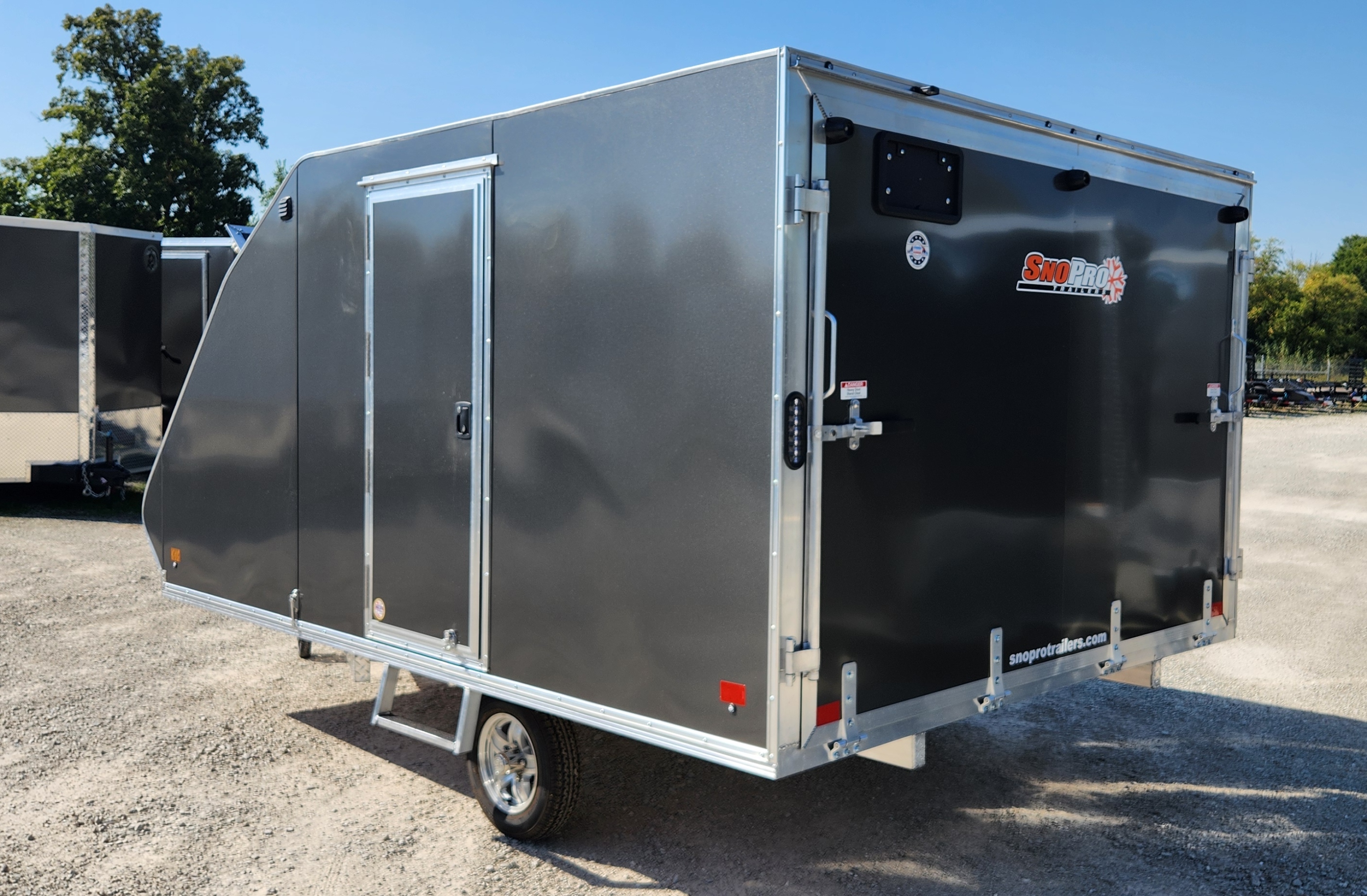 SNOPRO 101x12 Hybrid Aluminum Enclosed 2 Place Snowmobile Trailer with Extreme Weather Package - Charcoal