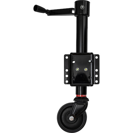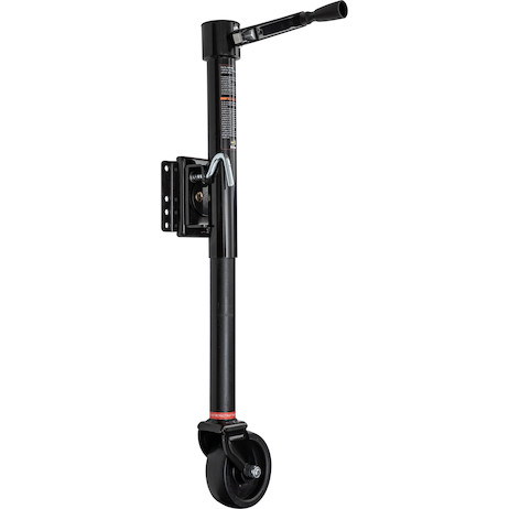The Buyers Products Drill-Powered Swing-Away Trailer Jack combines strength, convenience, and durability for easy trailer handling. Its 6 in. wheel rolls smoothly for simple maneuvering, while the swing-away design lets the jack fold up and out of the way when not in use.