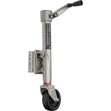 The Buyers Products Drill-Powered Swing-Away Trailer Jack combines strength, convenience, and durability for easy trailer handling. Its 6 in. wheel rolls smoothly for simple maneuvering, while the swing-away design lets the jack fold up and out of the way when not in use.
