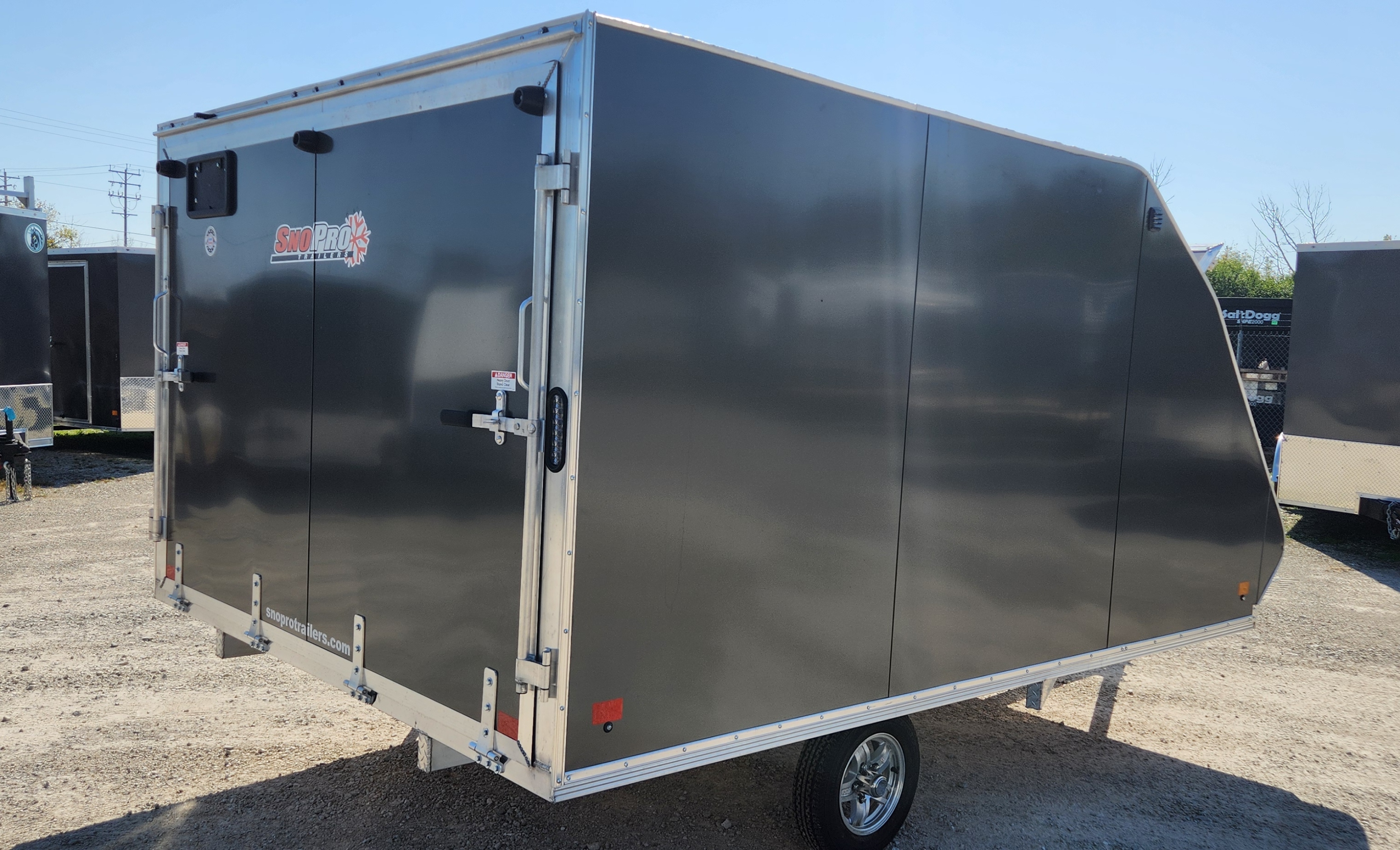SNOPRO 101x12 Hybrid Aluminum Enclosed 2 Place Snowmobile Trailer with Extreme Weather Package - Charcoal