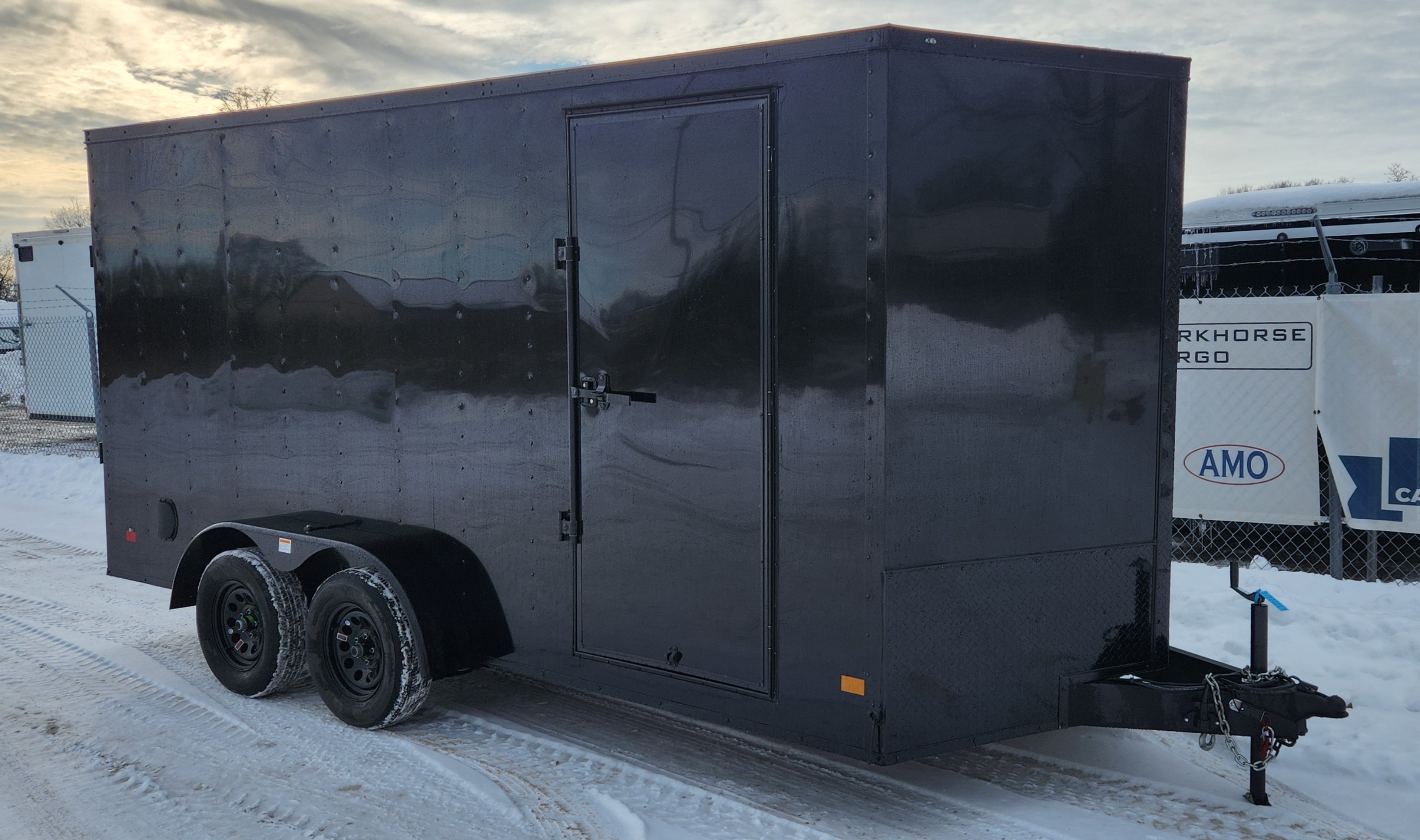 DarkHorse 7X16 Wedge Nose Tandem Axle Steel Cargo Trailer with Ramp Door, 12" extra Height- 2500 Series - Charcoal with Blackout Package