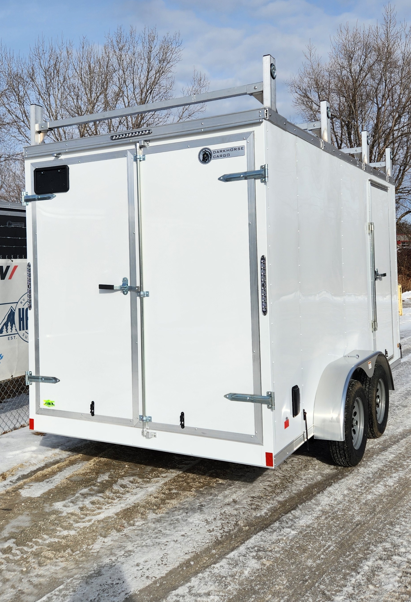 DarkHorse 7X14 Wedge Nose Tandem Axle Steel Contractor Cargo Trailer with Double Rear Doors, 12" Extra Height - 2500 Series - White