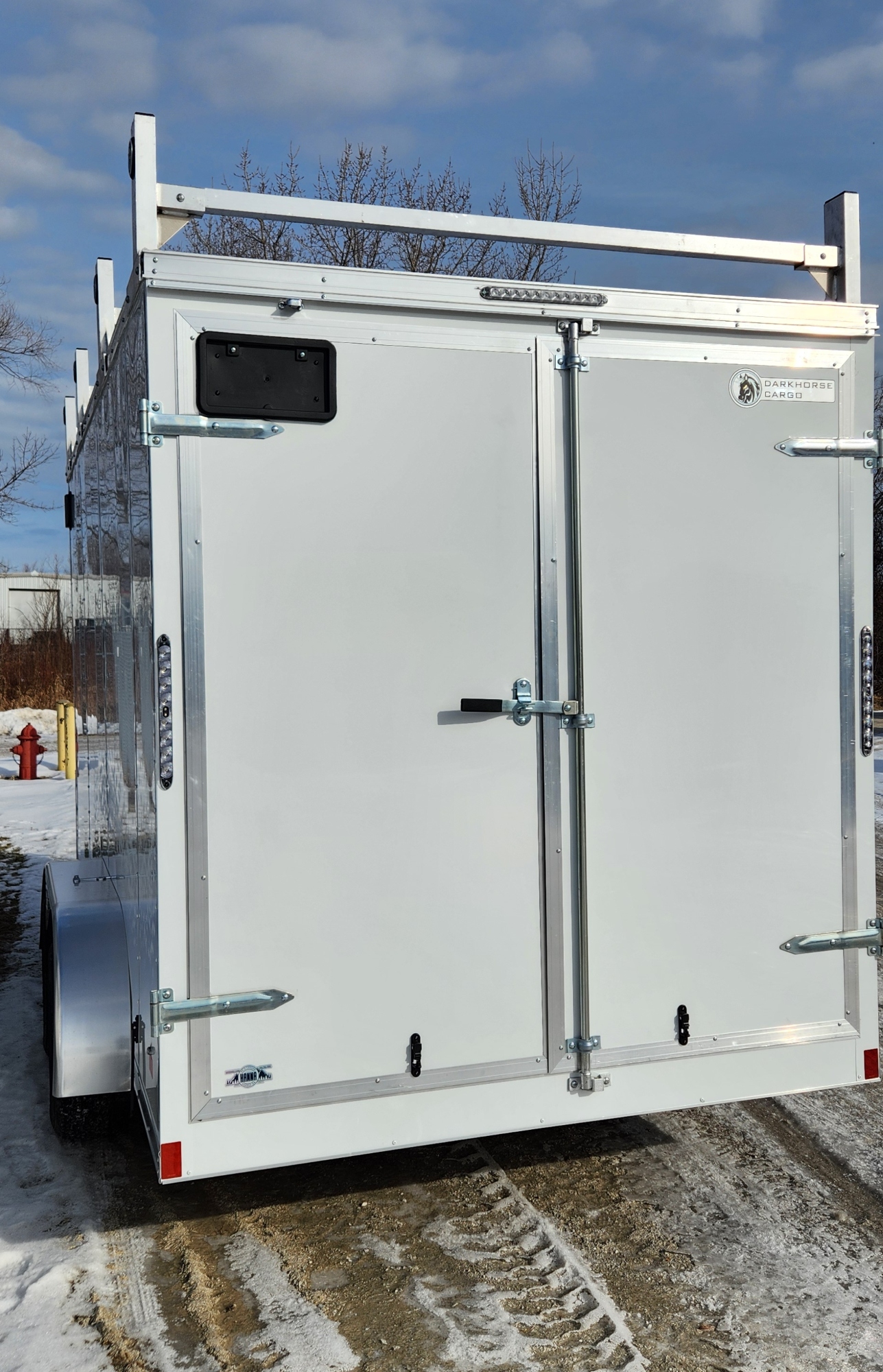 DarkHorse 7X14 Wedge Nose Tandem Axle Steel Contractor Cargo Trailer with Double Rear Doors, 12" Extra Height - 2500 Series - White (DHW7X14TA35)