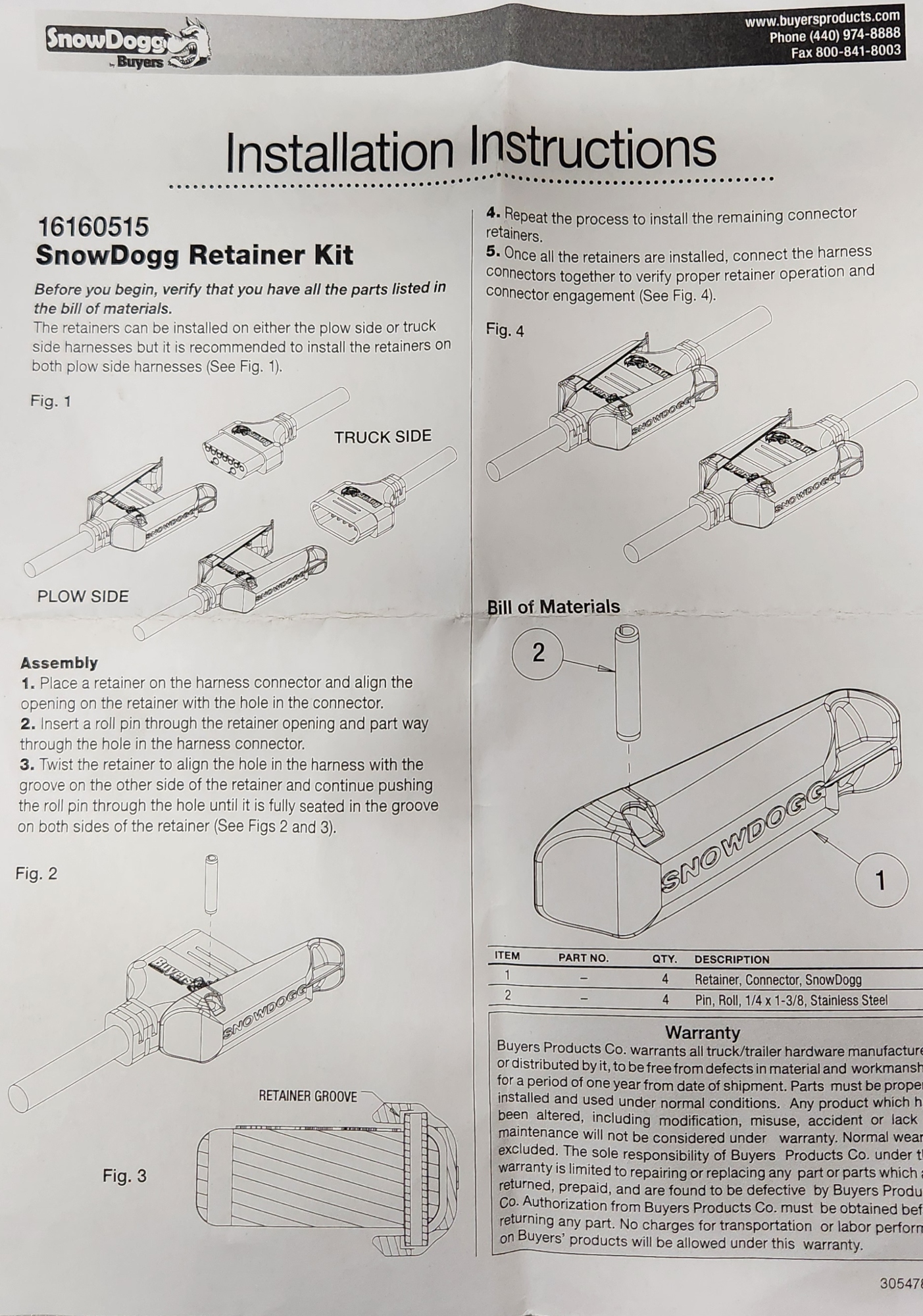 Buyers 16160515 4 Piece Retainer Kit For SnowDogg Plows