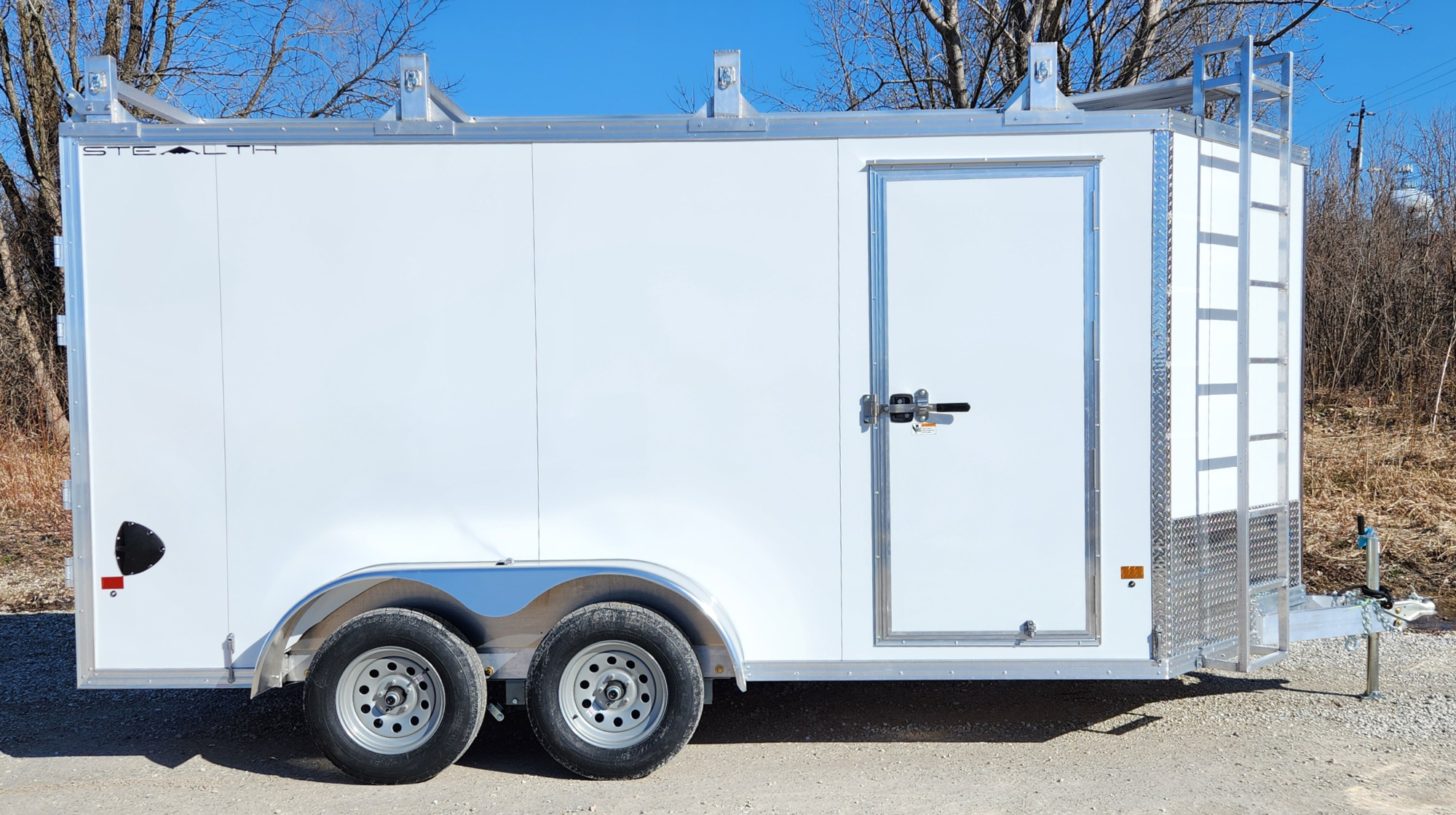 CargoPro Stealth 7 X 14 Aluminum Frame Tandem Axle Ultimate Contractor Cargo Trailer Double Rear Doors, 79 inch Interior Height- White (C7X14S-UCP-IF)