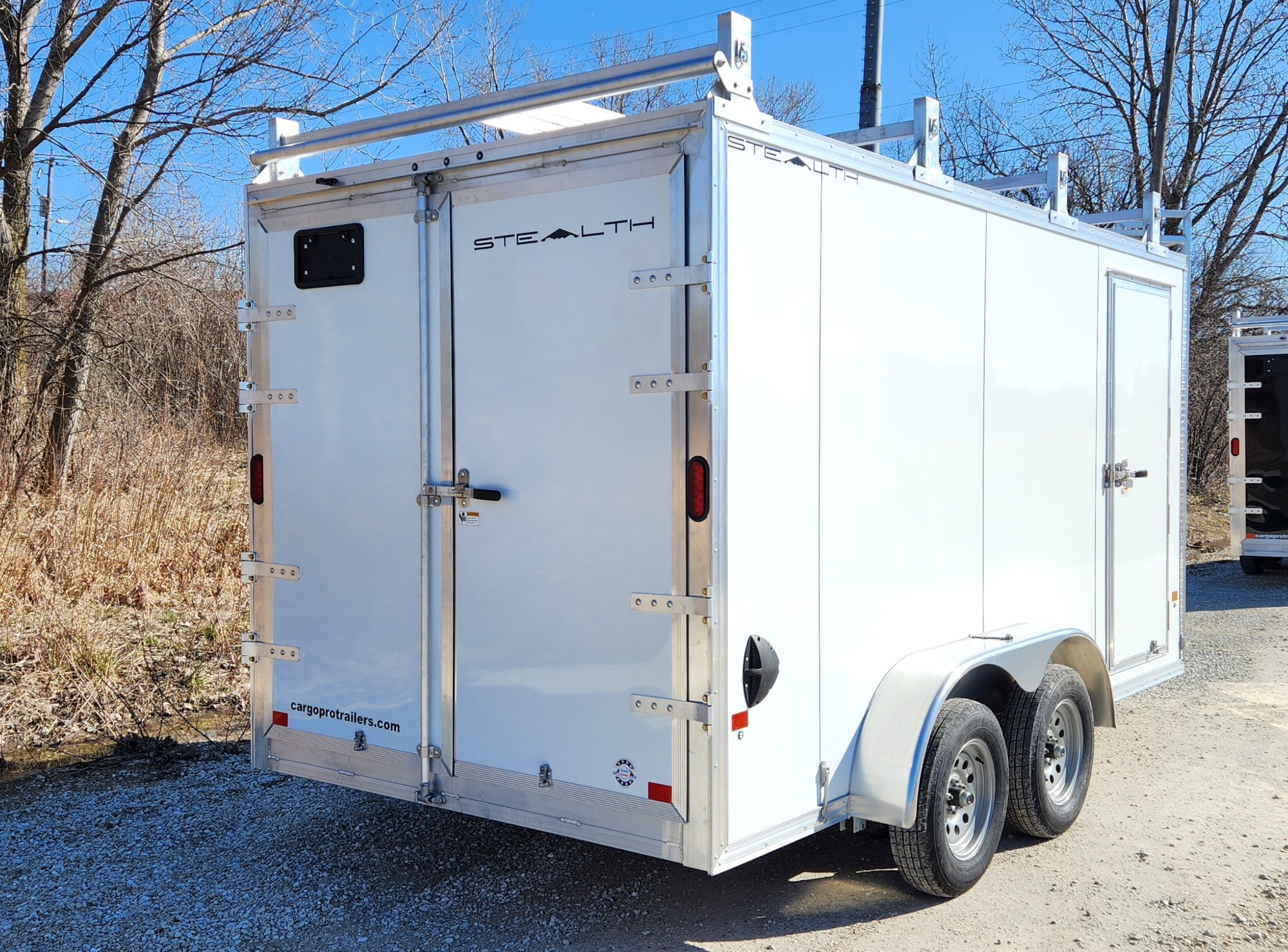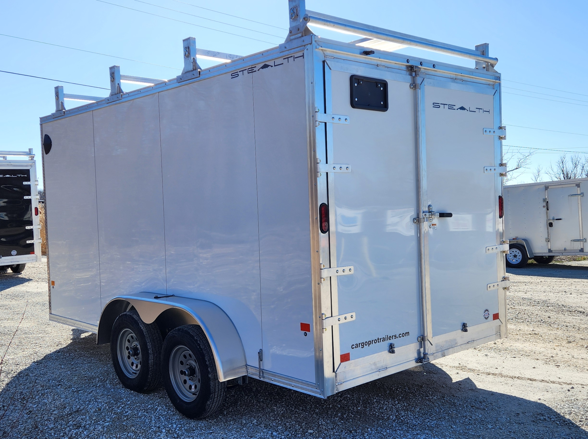 CargoPro Stealth 7 X 14 Aluminum Frame Tandem Axle Ultimate Contractor Cargo Trailer Double Rear Doors, 79 inch Interior Height- White