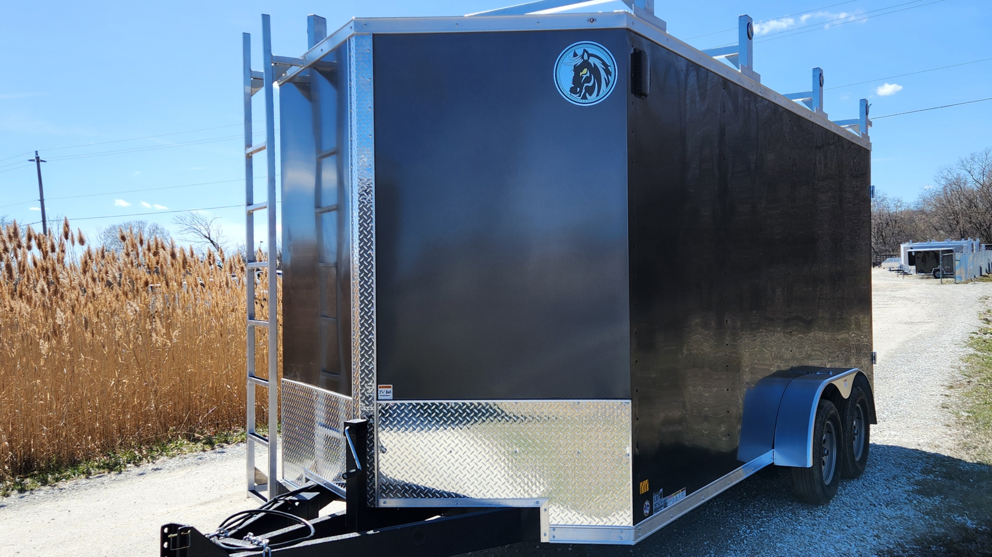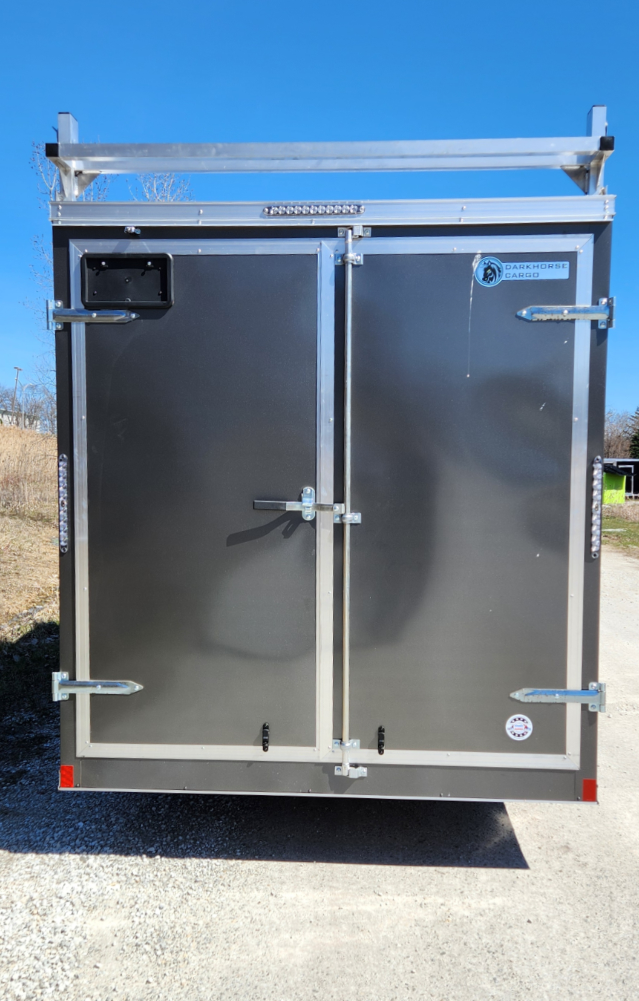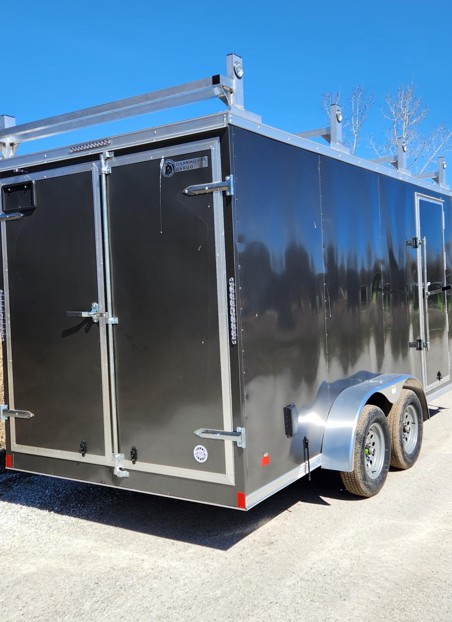 DarkHorse 7X16 Wedge Nose Tandem Axle Steel Contractor Cargo Trailer with Double Rear Doors, 12" Extra Height - 2500 Series - Charcoal