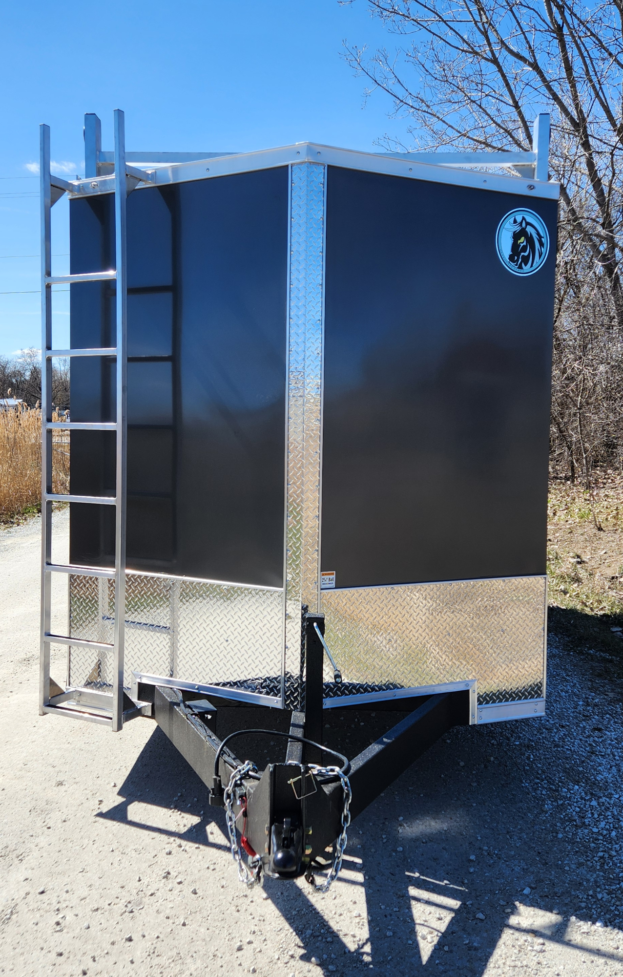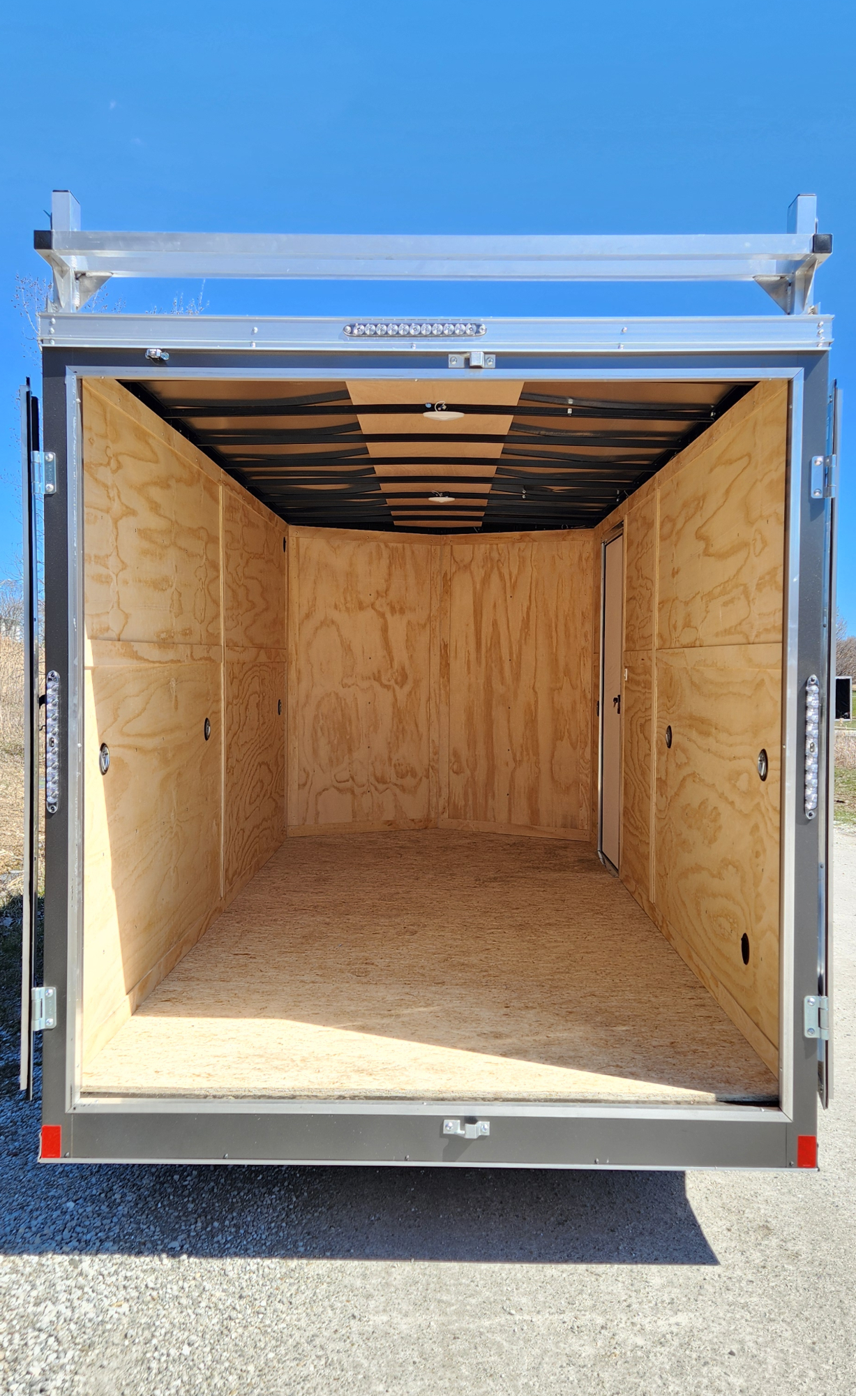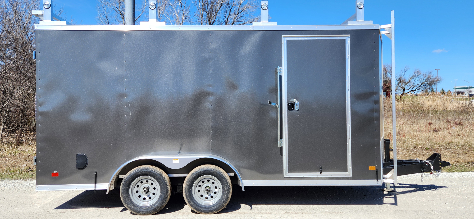 DarkHorse 7X16 Wedge Nose Tandem Axle Steel Contractor Cargo Trailer with Double Rear Doors, 12" Extra Height - 2500 Series - Charcoal