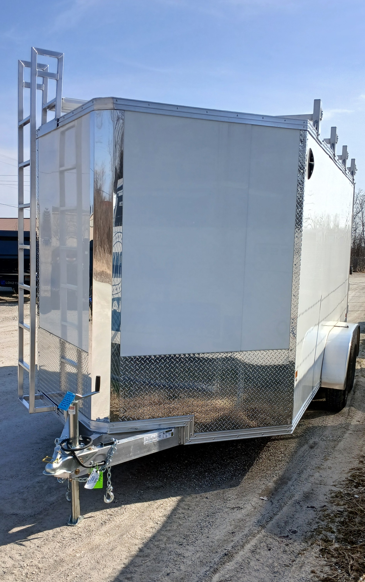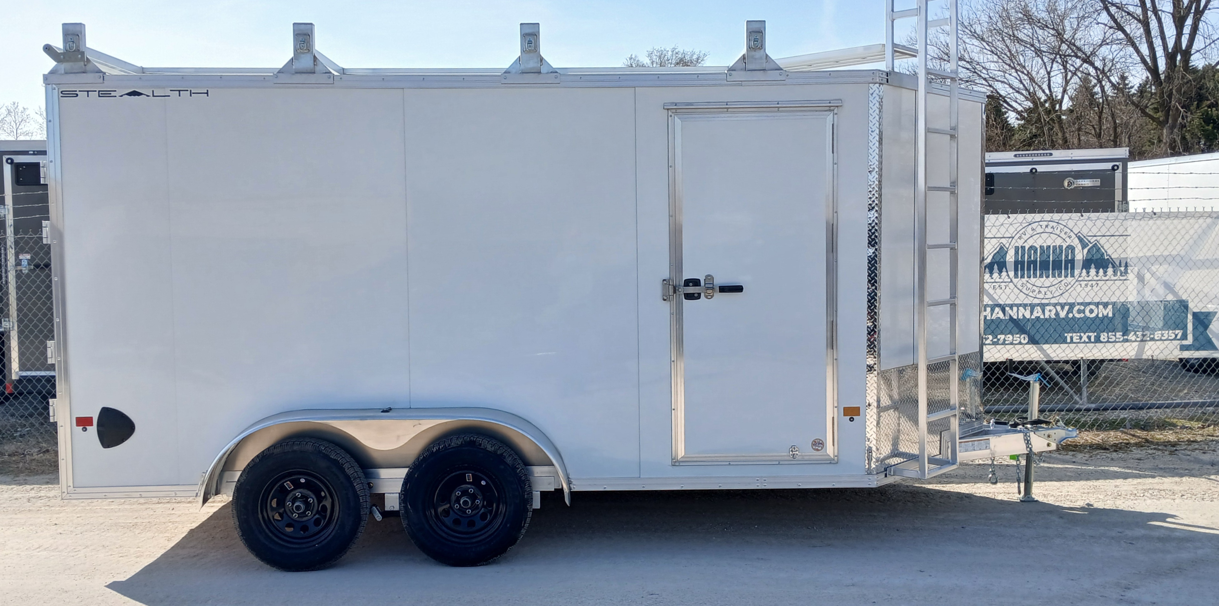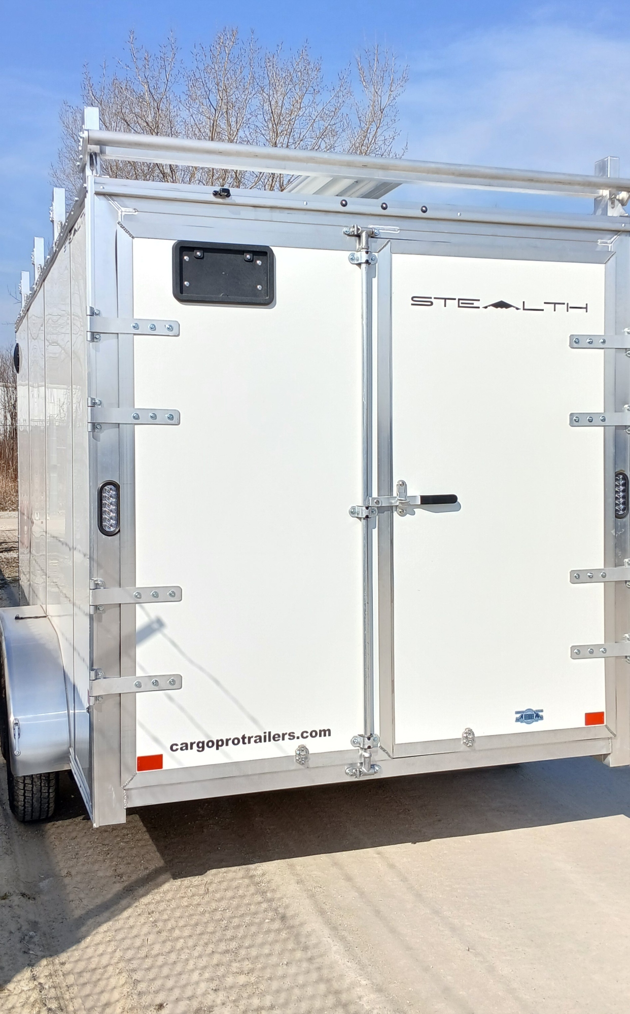 CargoPro Stealth 7 X 14 Aluminum Frame Tandem Axle Ultimate Contractor Cargo Trailer Double Rear Doors, 79 inch Interior Height- White Polycore