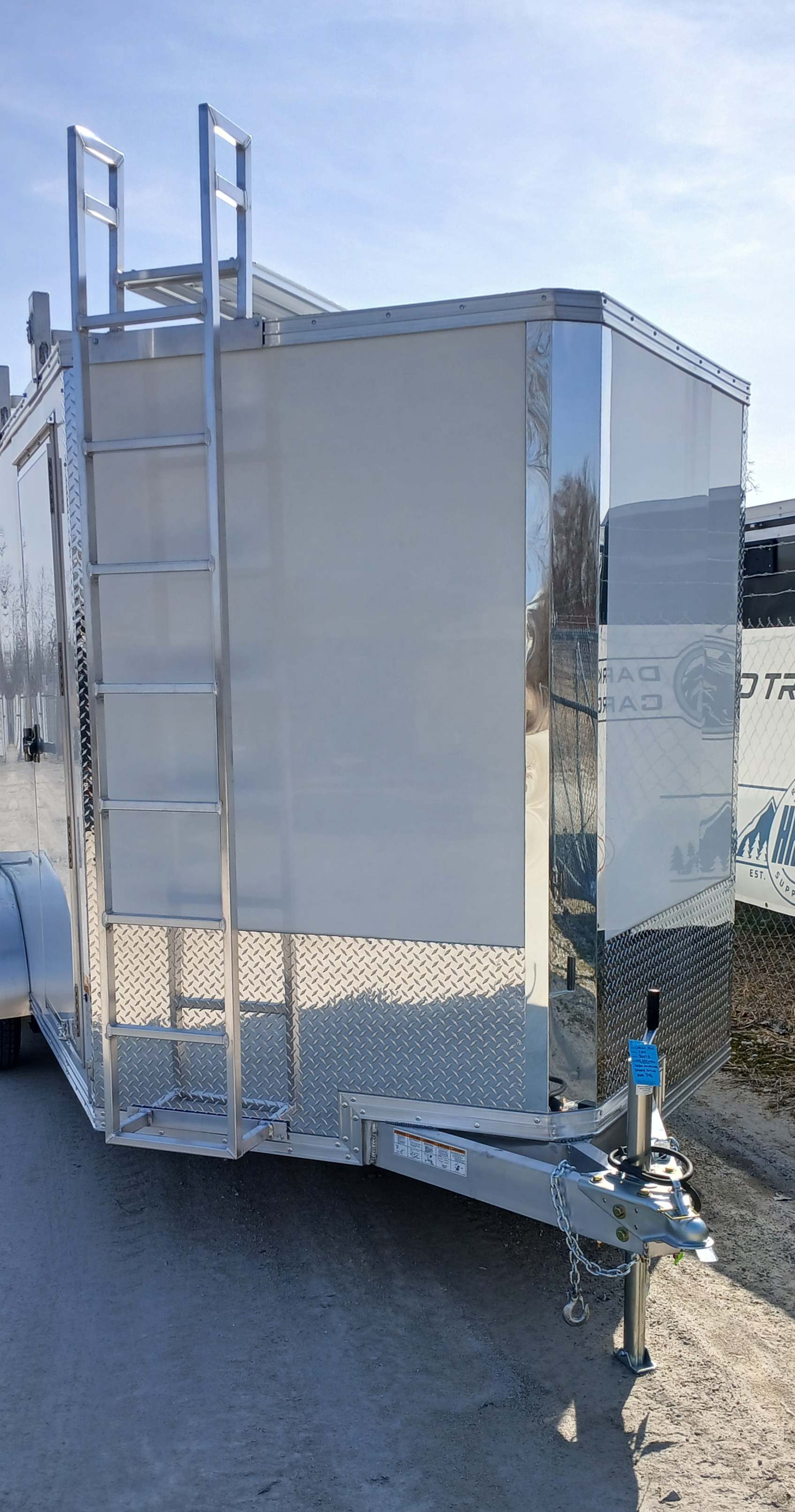 CargoPro Stealth 7 X 14 Aluminum Frame Tandem Axle Ultimate Contractor Cargo Trailer Double Rear Doors, 79 inch Interior Height- White Polycore (C7X14S-UCP-IF)