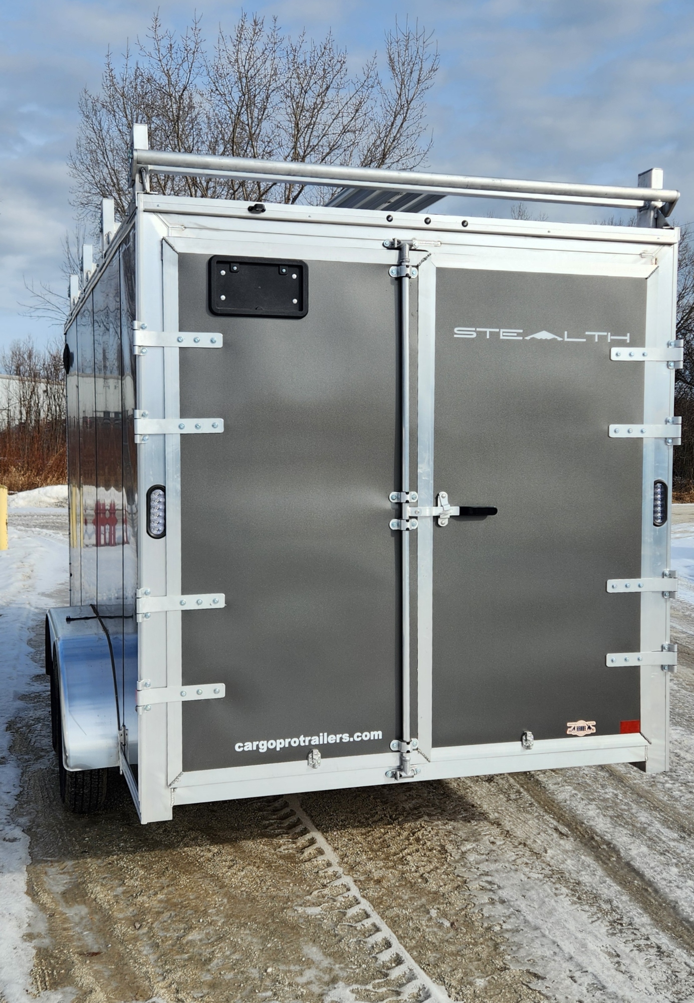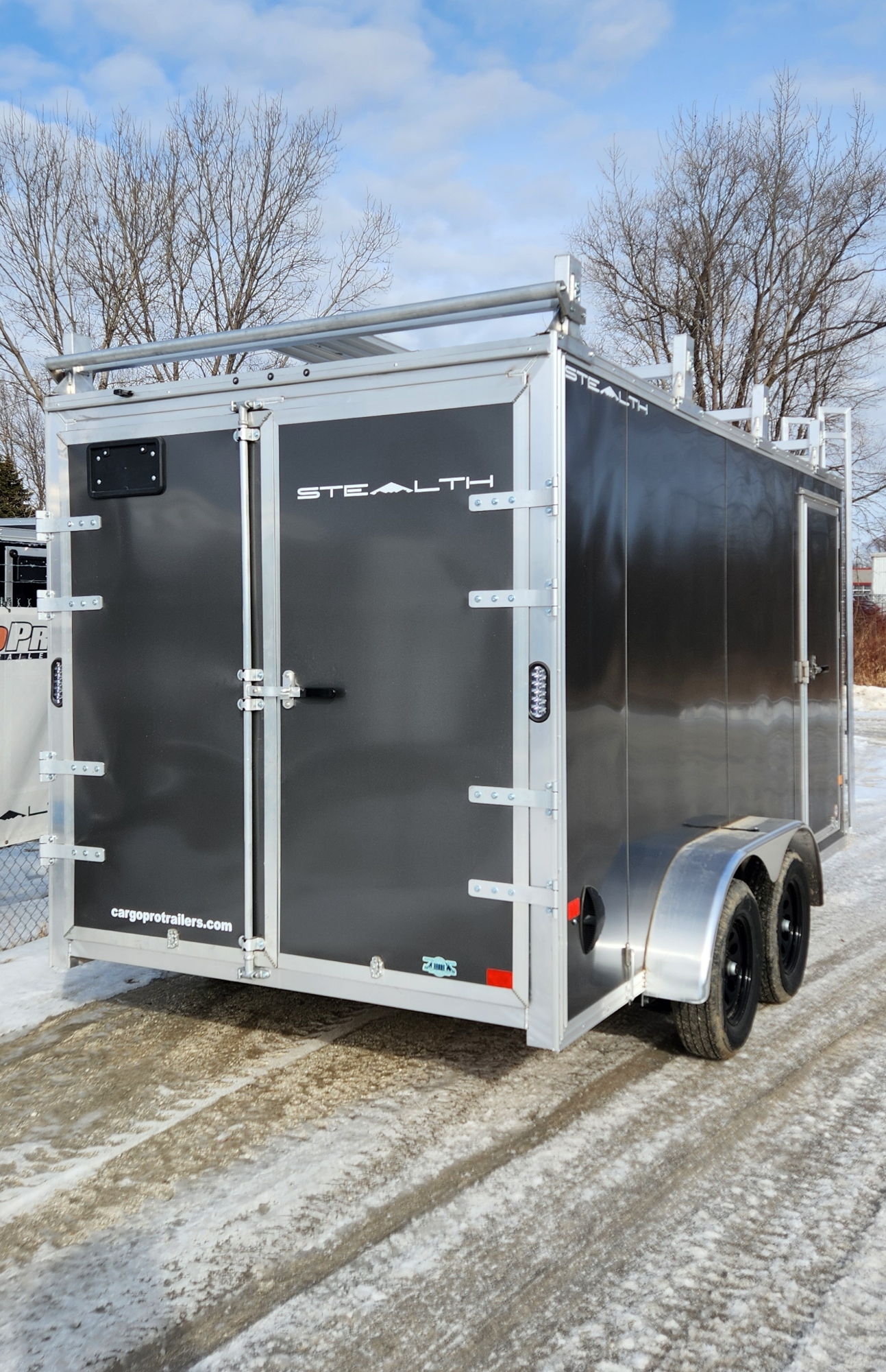 CargoPro Stealth 7 X 14 Aluminum Frame Tandem Axle Ultimate Contractor Cargo Trailer Double Rear Doors, 79 inch Interior Height- Charcoal (C7X14S-UCP-IF)