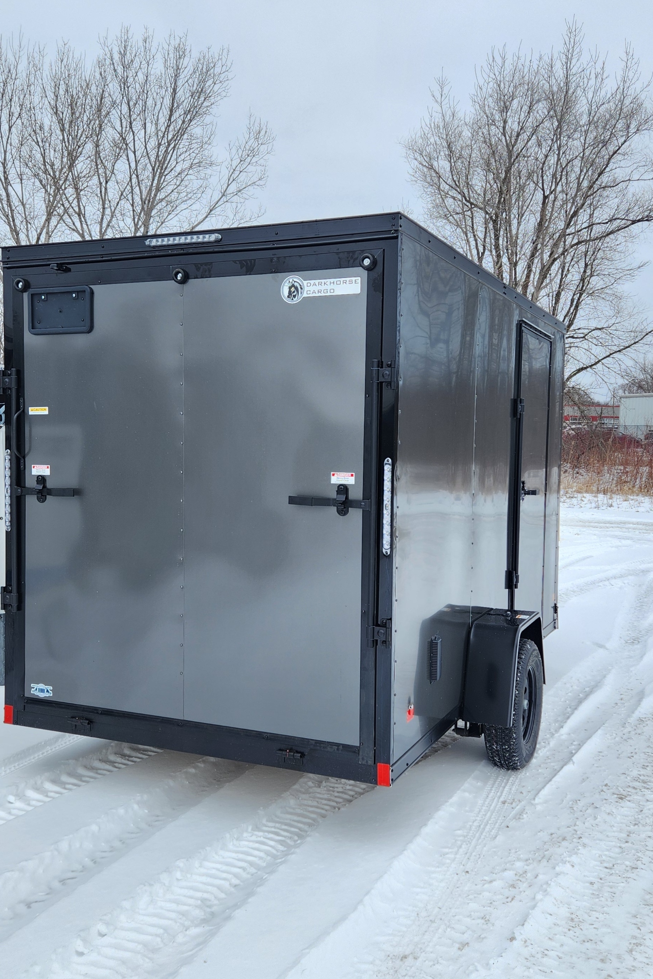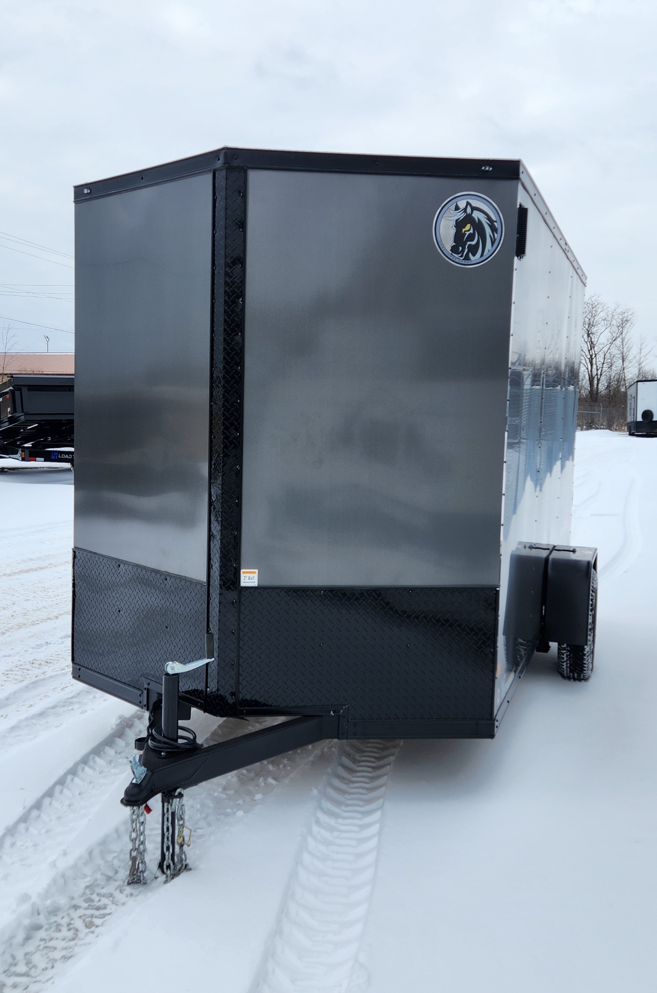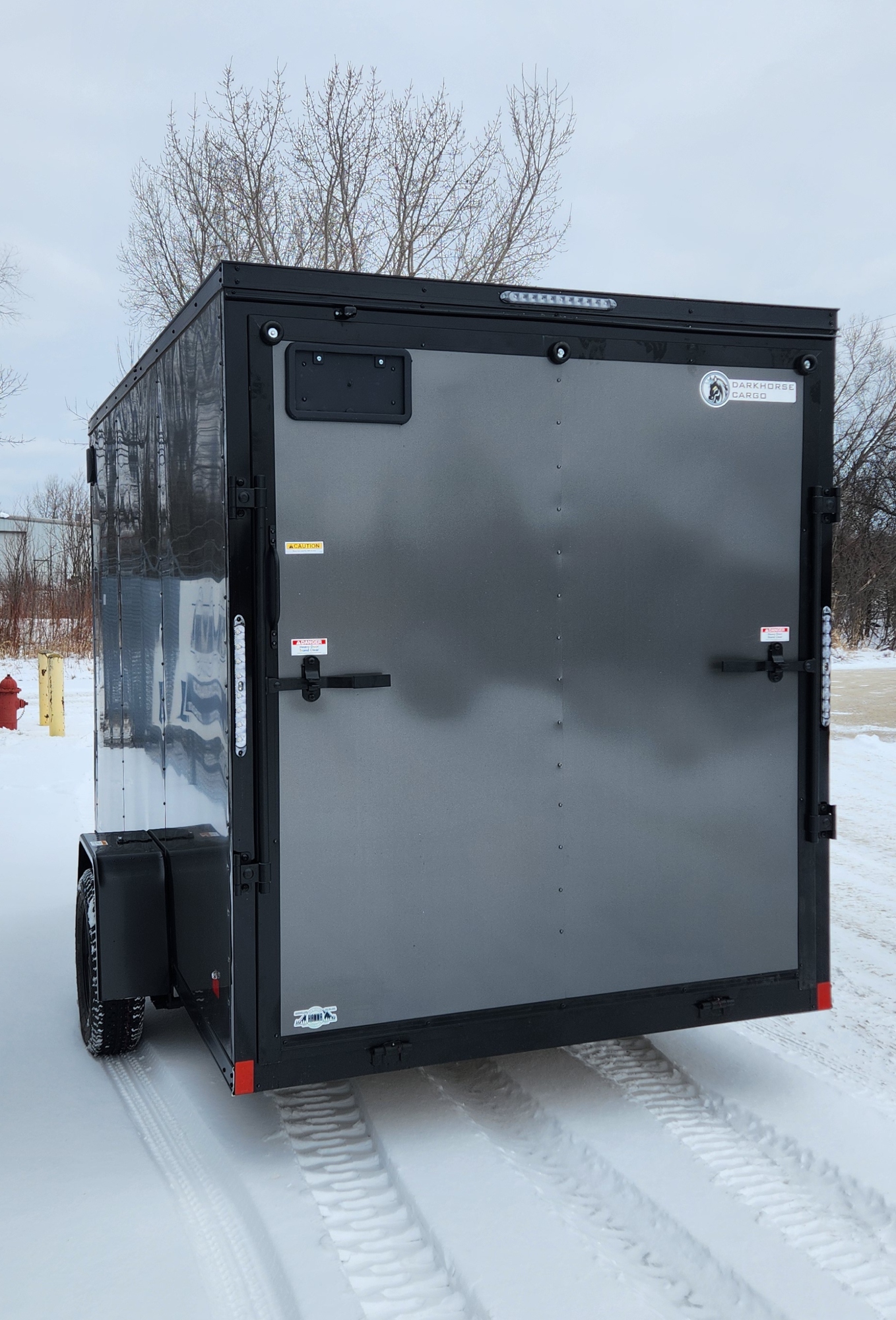 DarkHorse 6.5X12 Wedge Nose Single Axle Steel Cargo Trailer with Ramp Door, 12" Extra Height - 2500 Series - Charcoal with Blackout Package