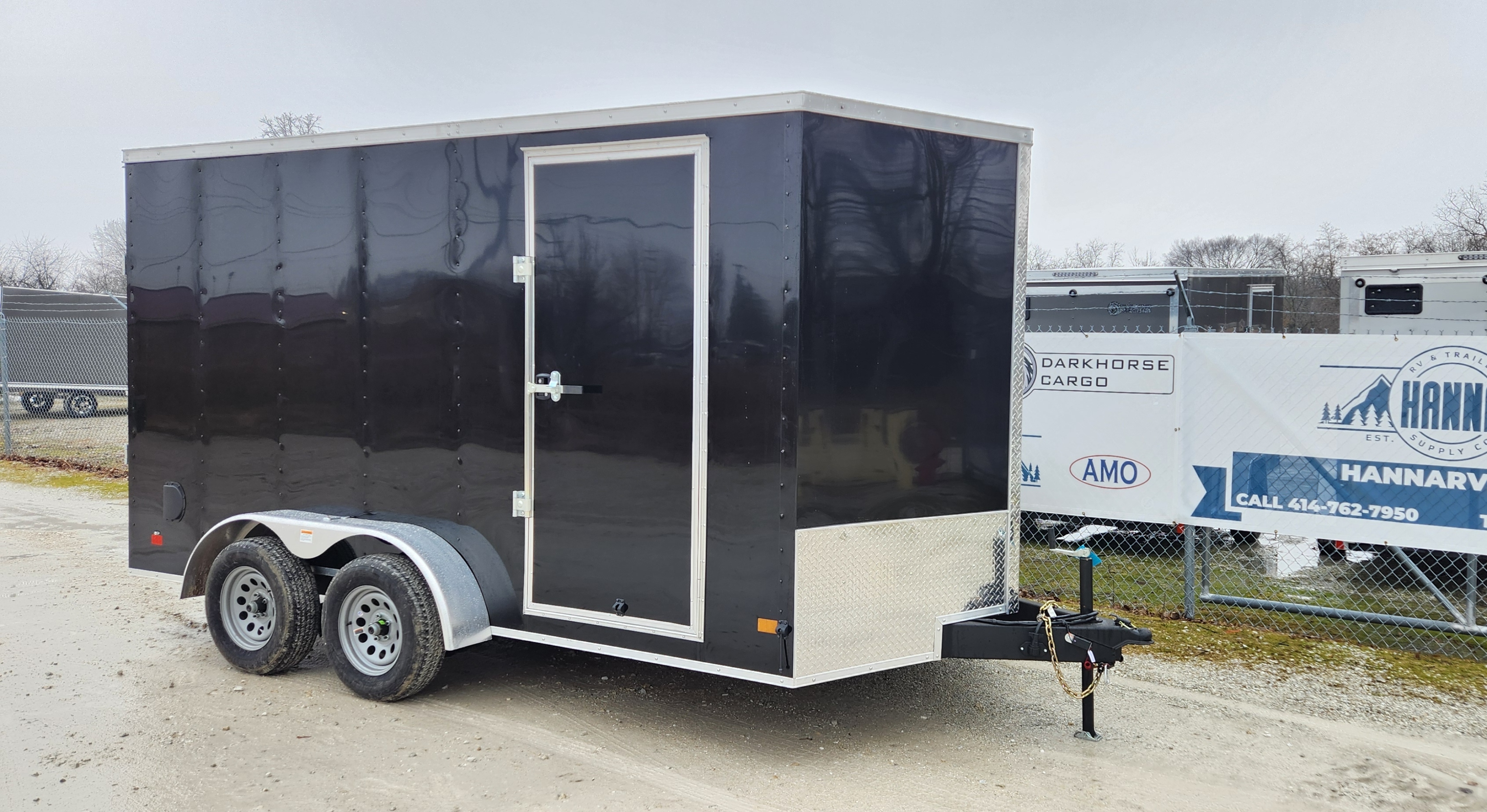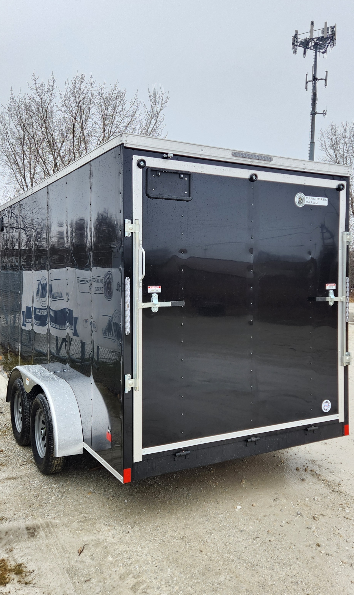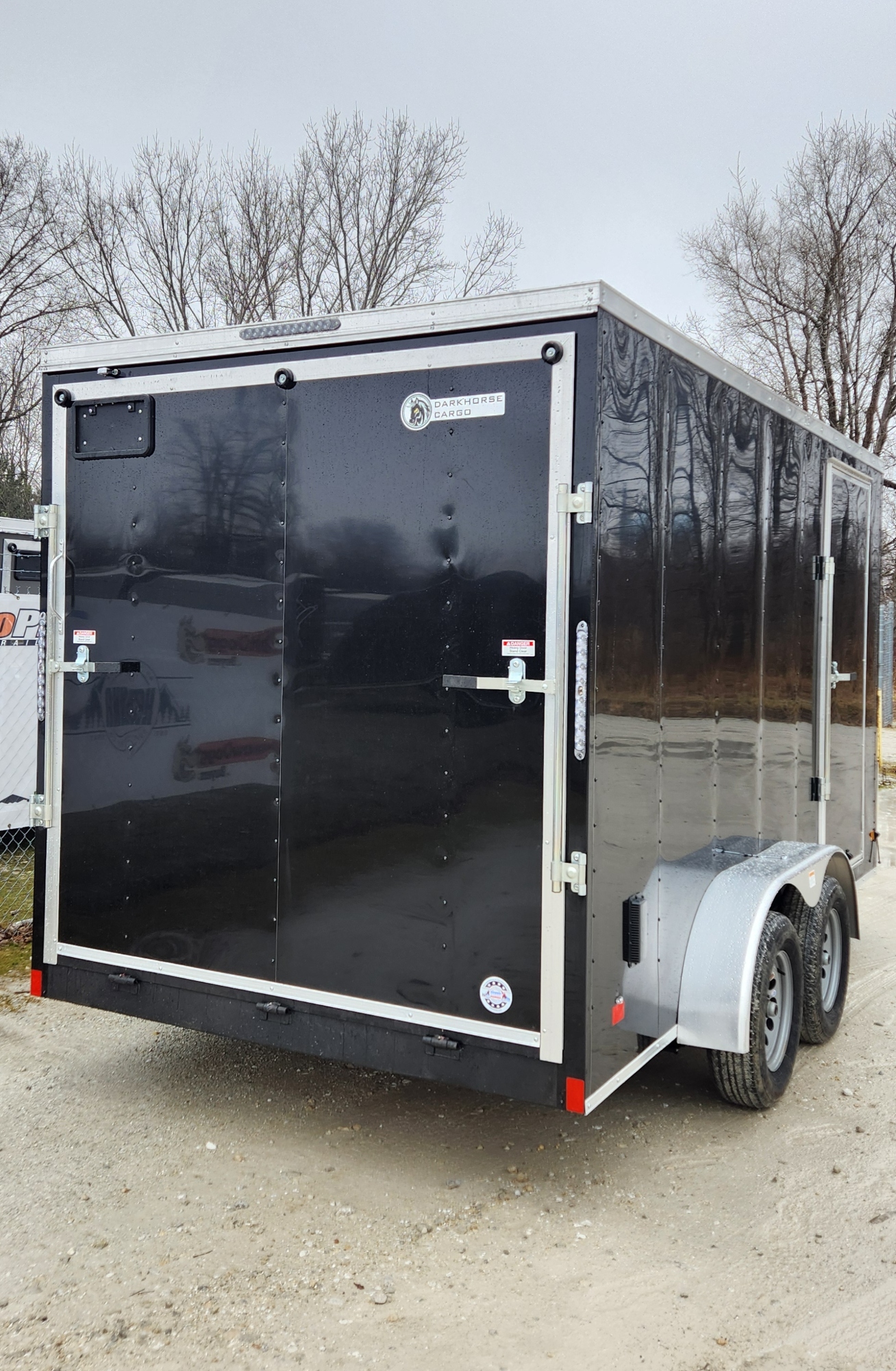DarkHorse 7X14 Wedge Nose Tandem Axle Steel Cargo Trailer with Ramp Door, 12" Extra Height - 1500 Series - Black