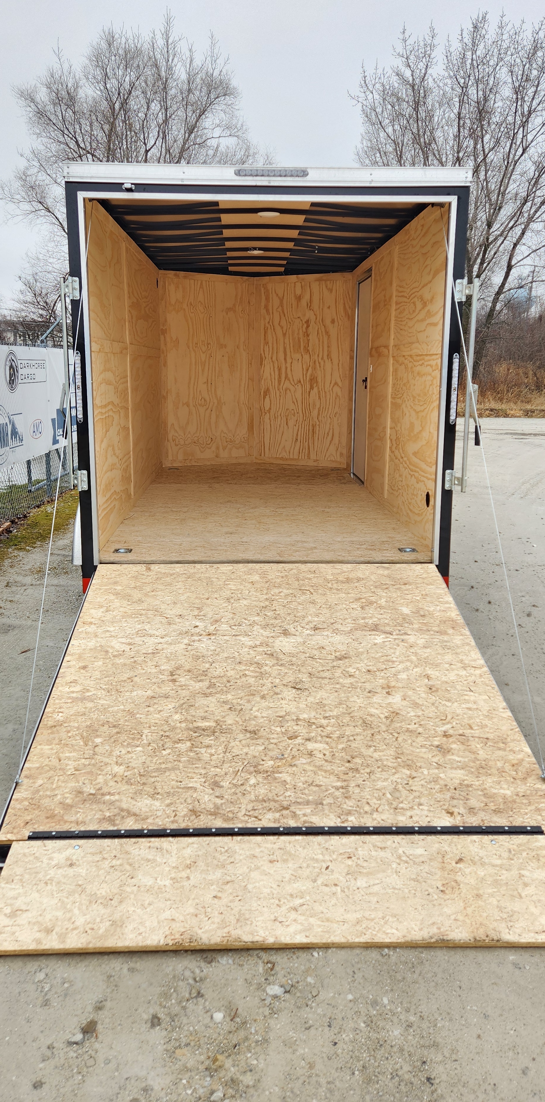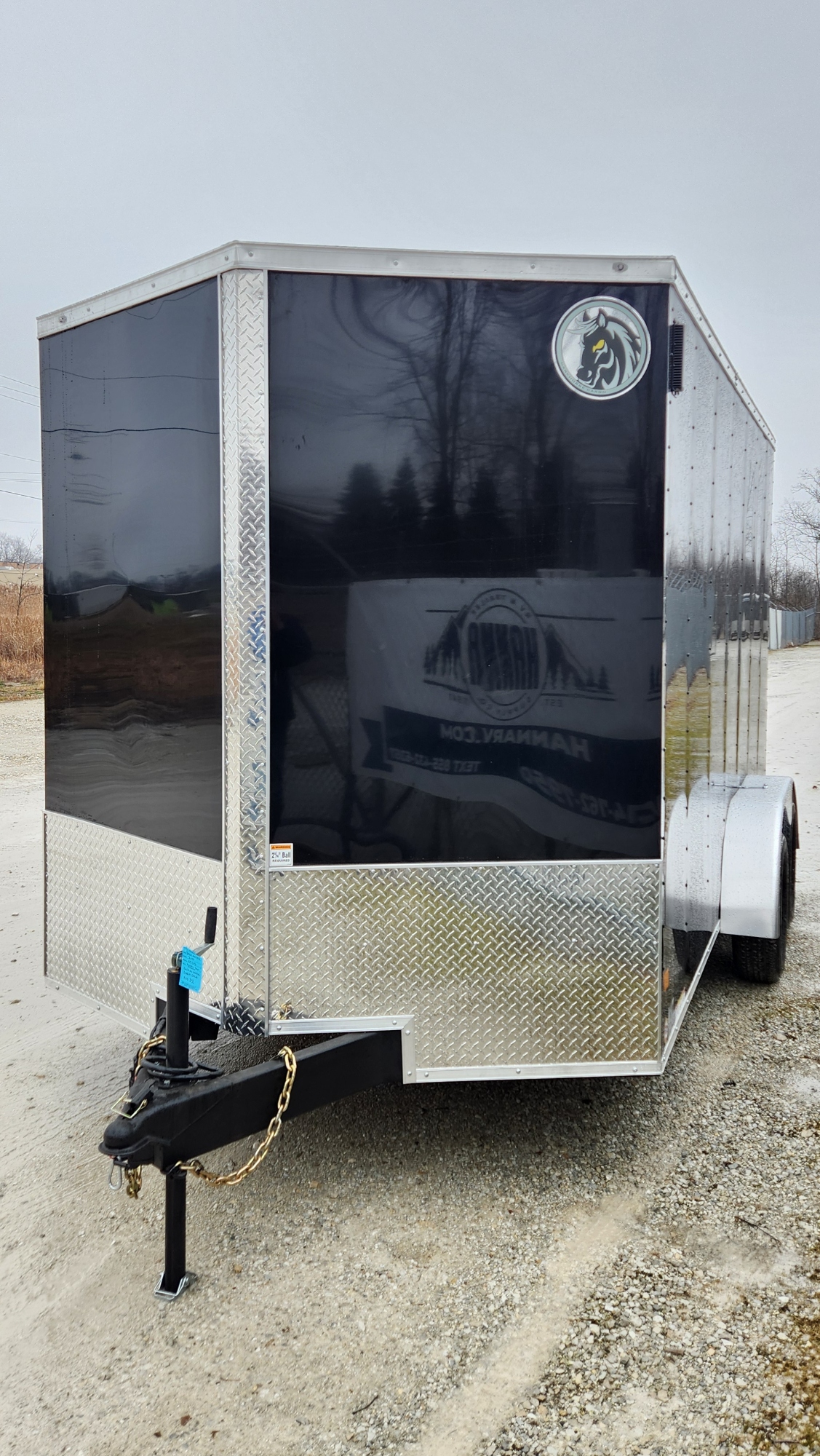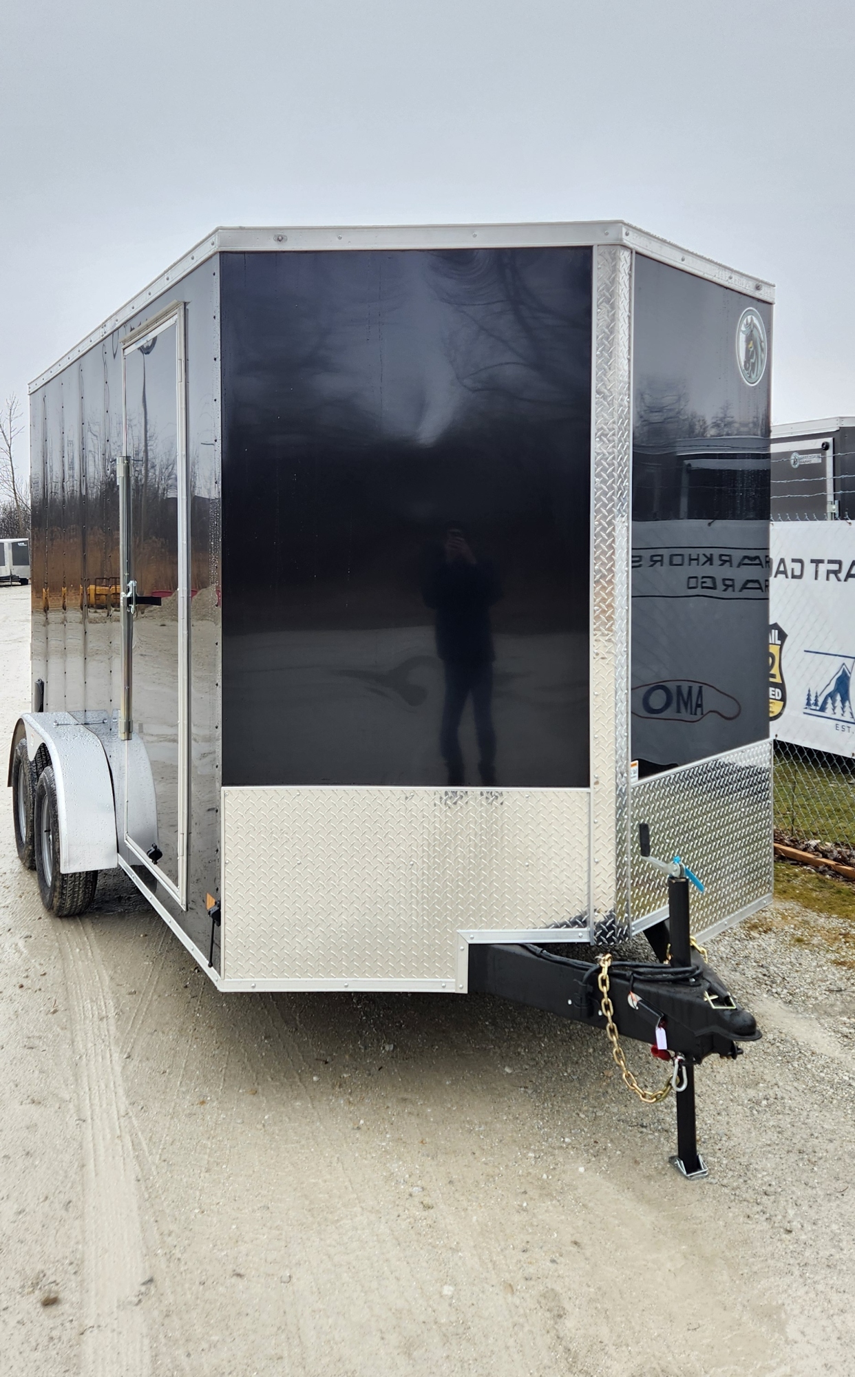 DarkHorse 7X14 Wedge Nose Tandem Axle Steel Cargo Trailer with Ramp Door, 12" Extra Height - 1500 Series - Black