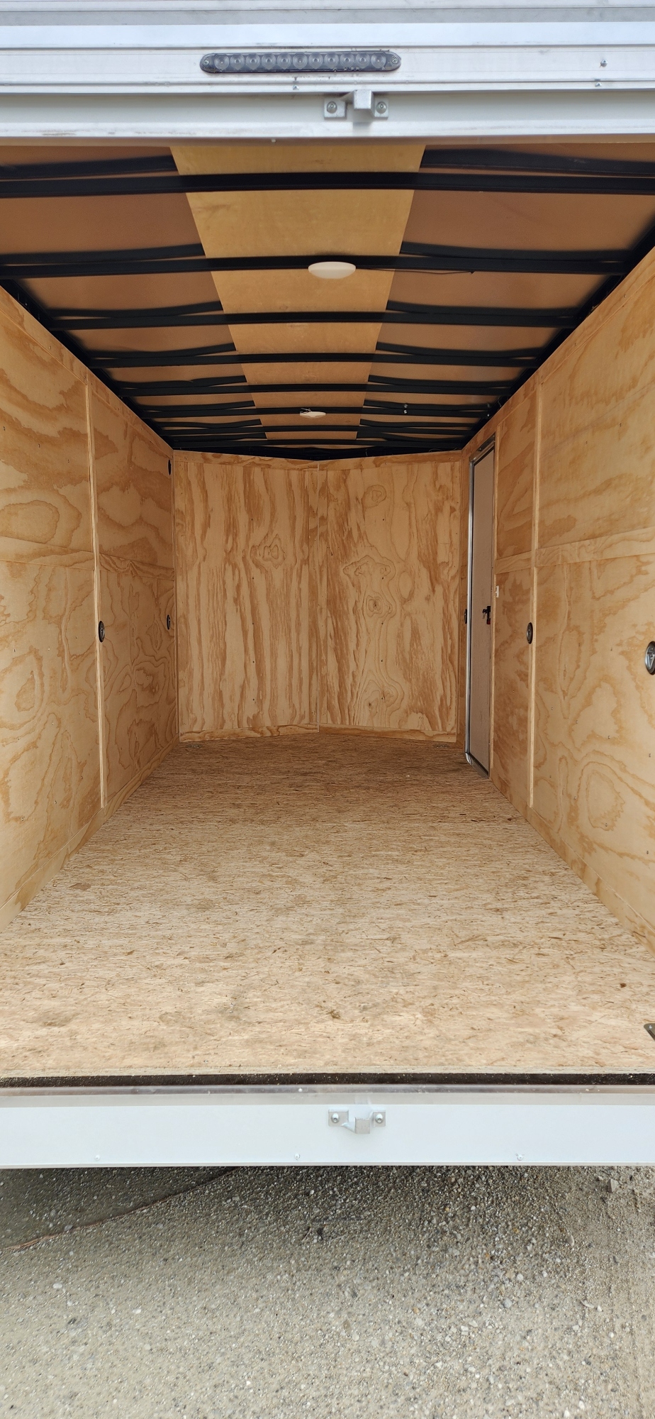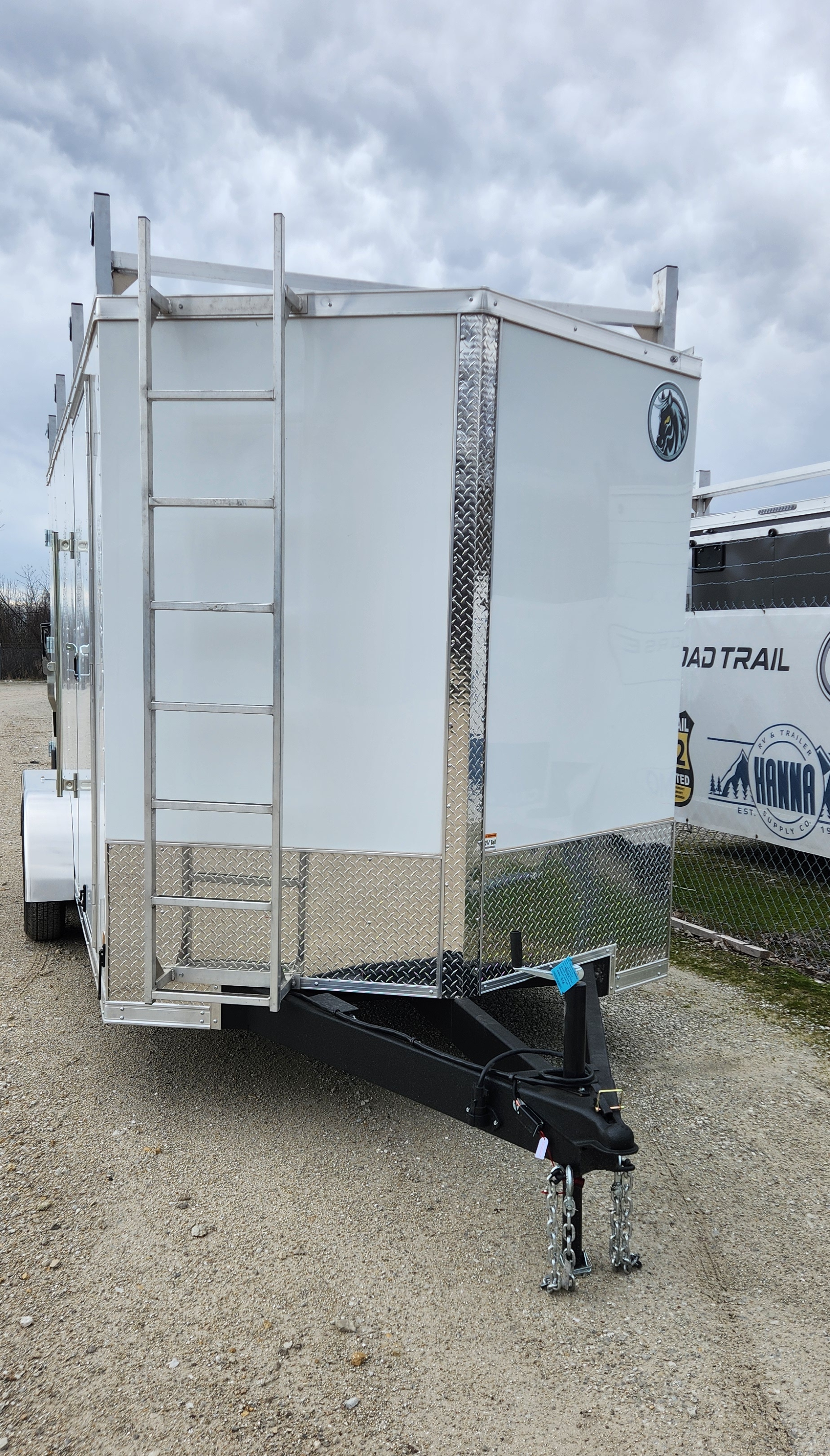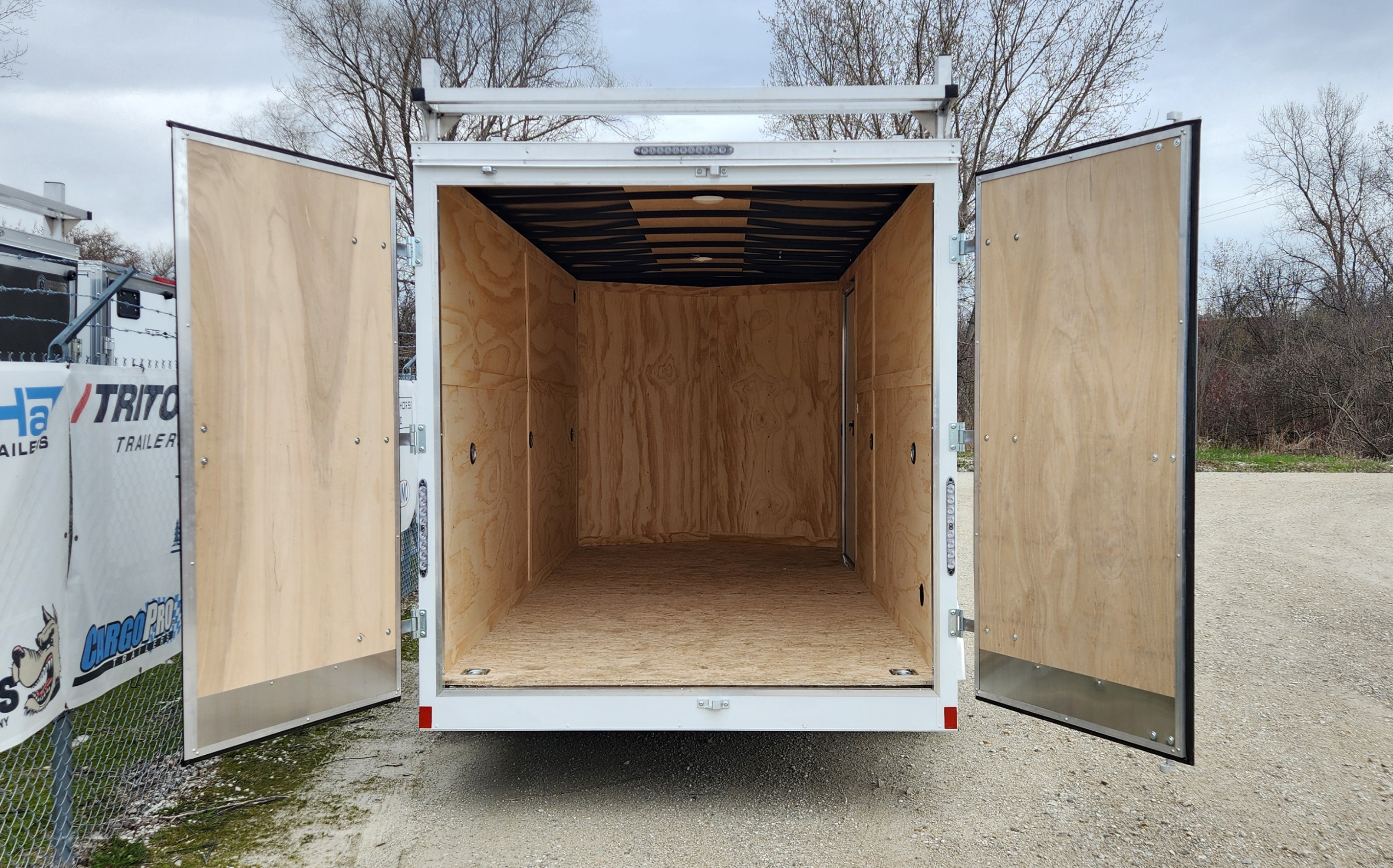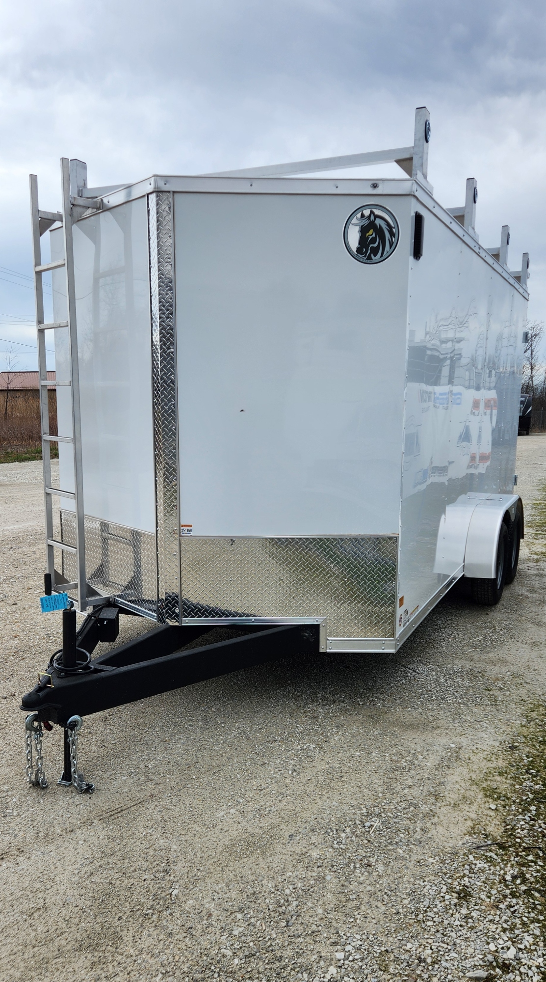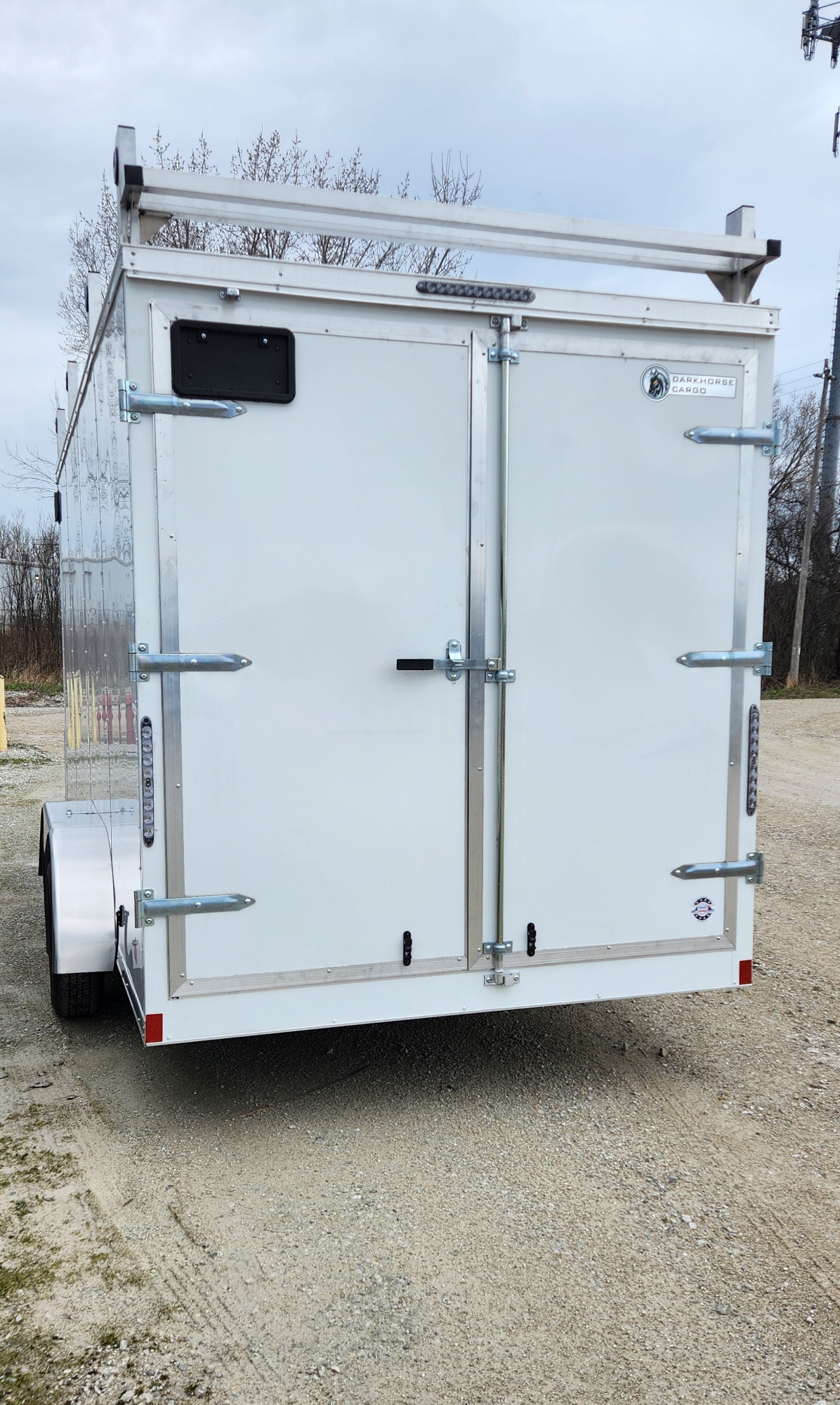 DarkHorse 7X16 Wedge Nose Tandem Axle Steel Contractor Cargo Trailer with Double Rear Doors, 12" Extra Height - 2500 Series - White