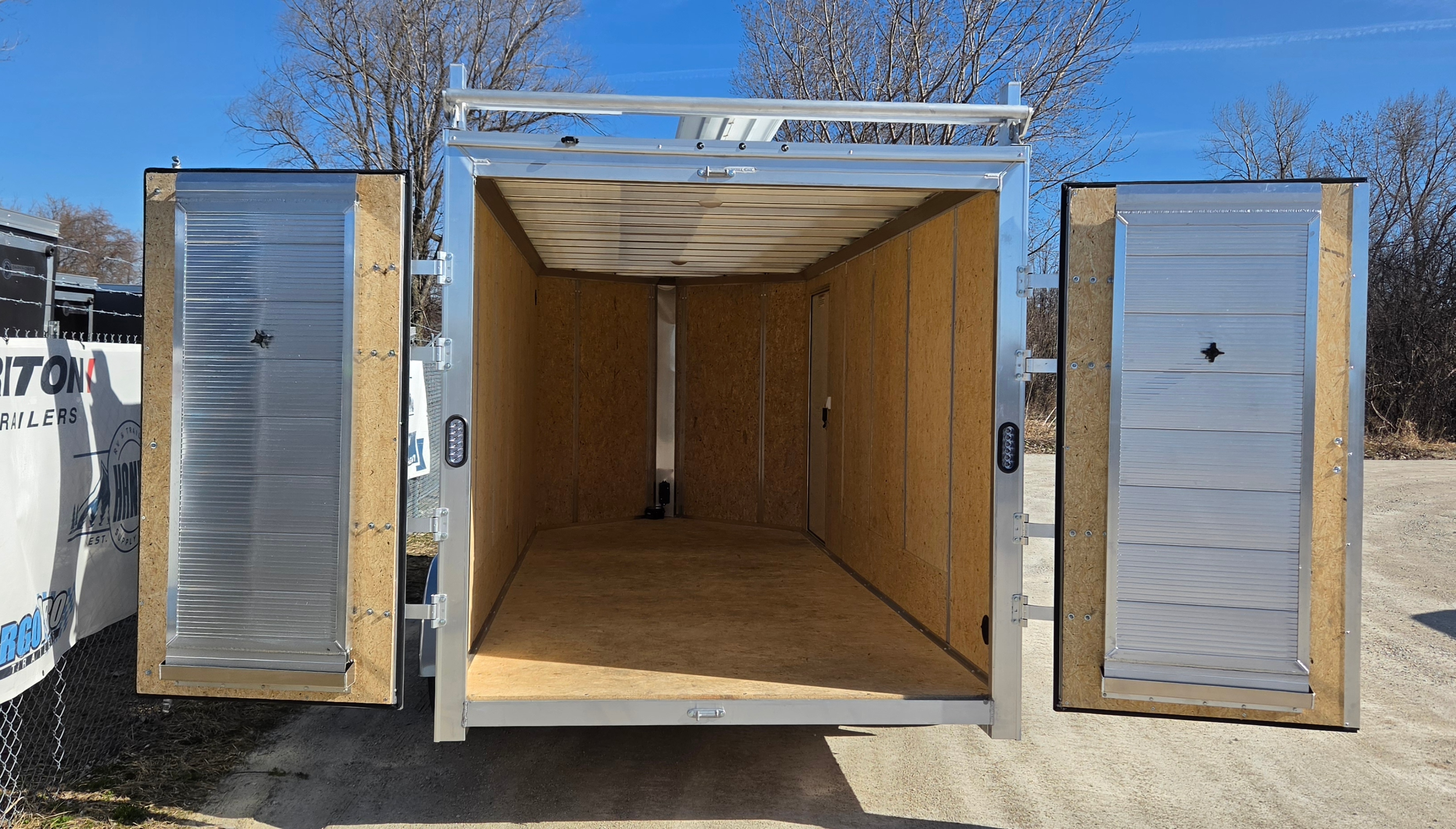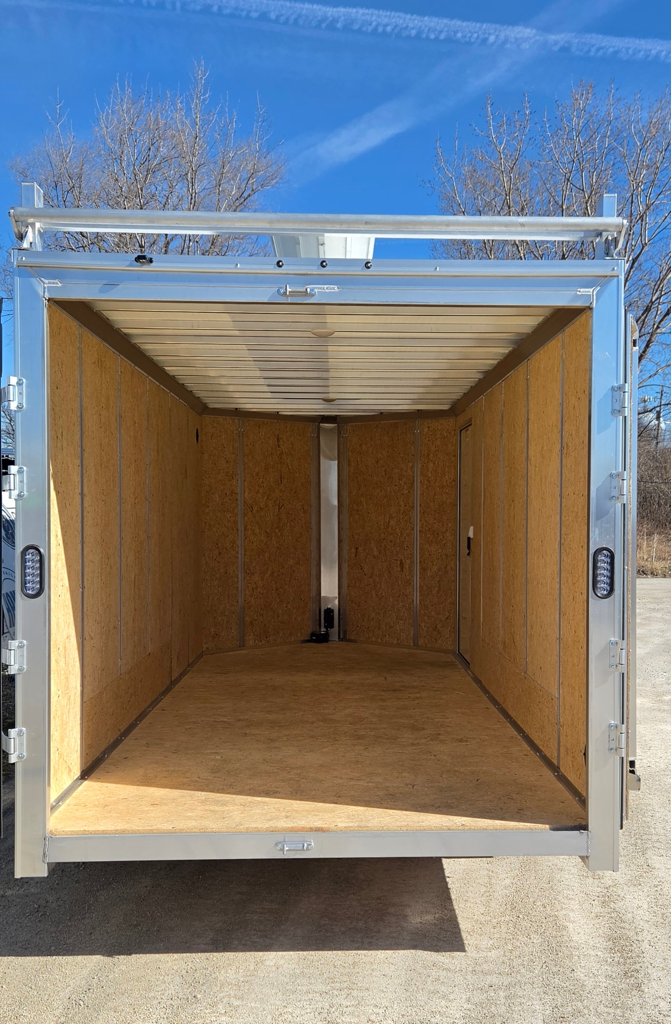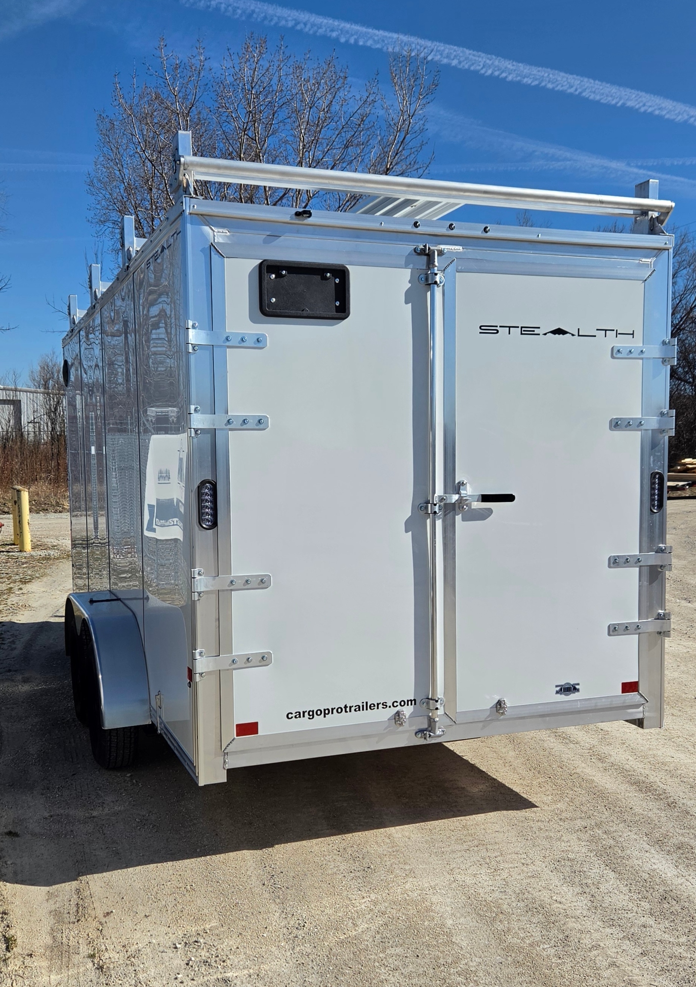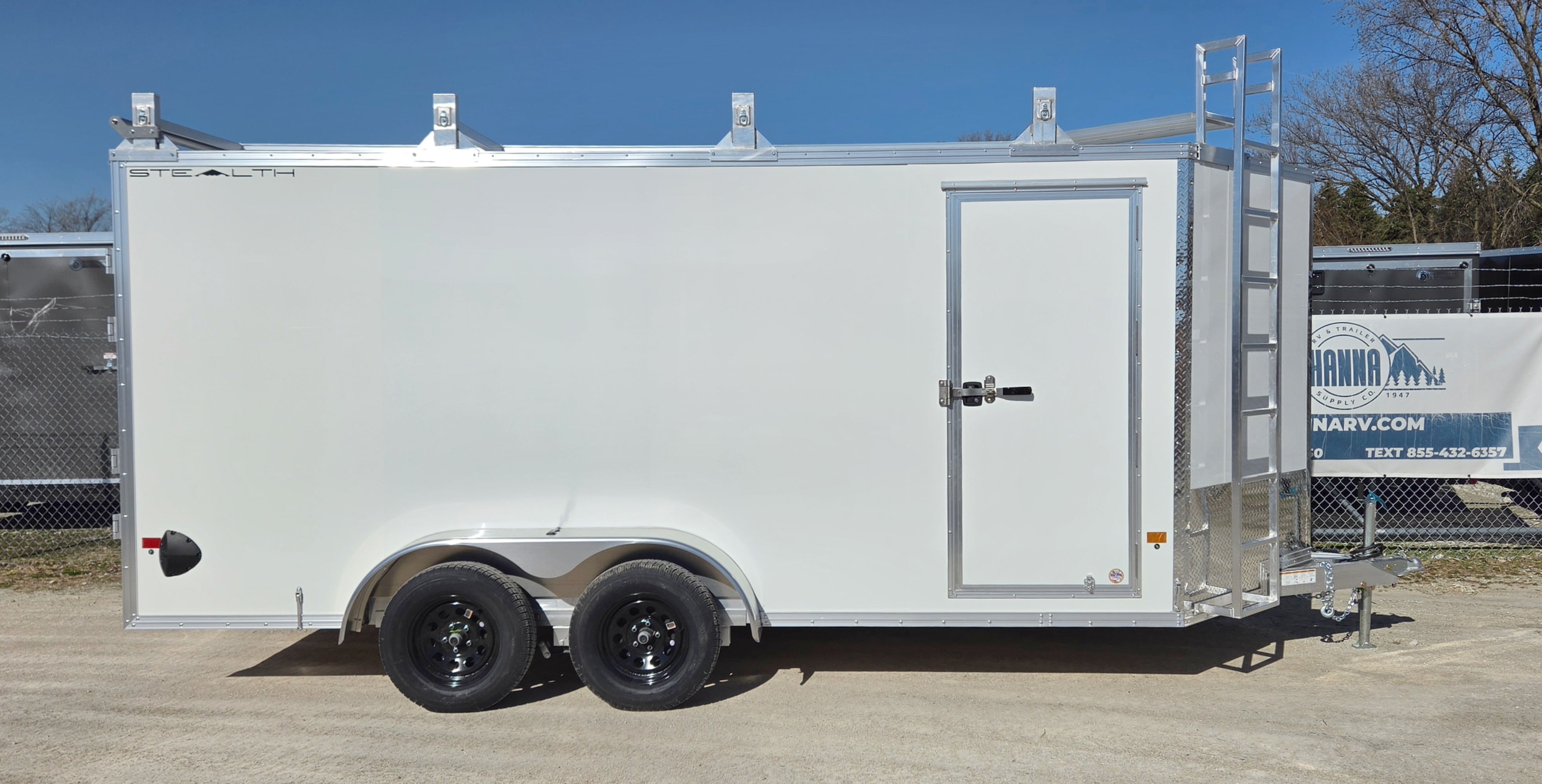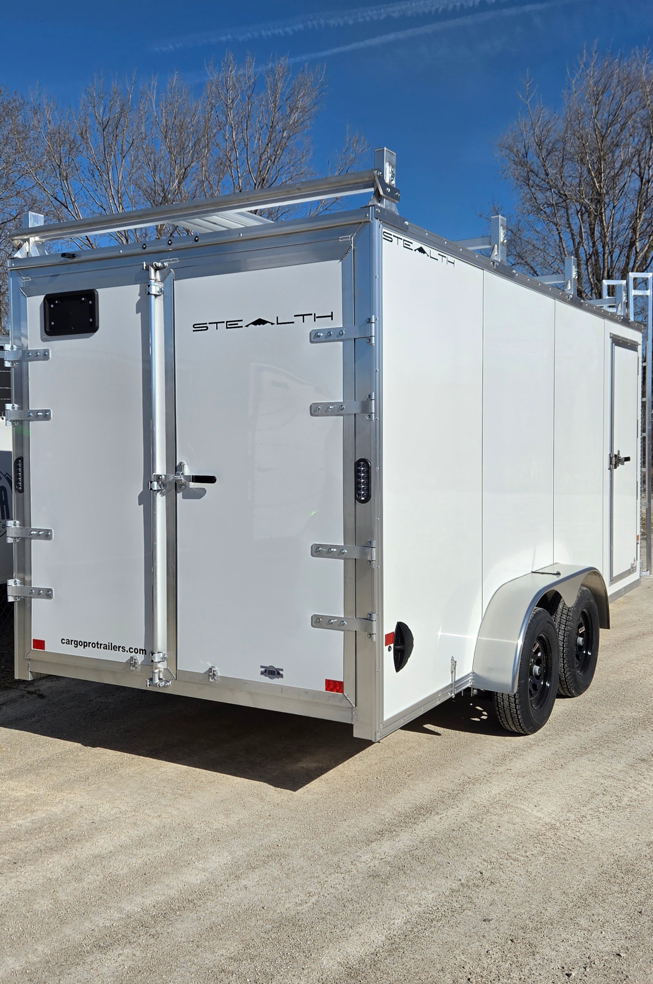 CargoPro Stealth 7 X 16 Aluminum Frame Tandem Axle Ultimate Contractor Cargo Trailer Double Rear Doors, 79 inch Interior Height- White Polycore