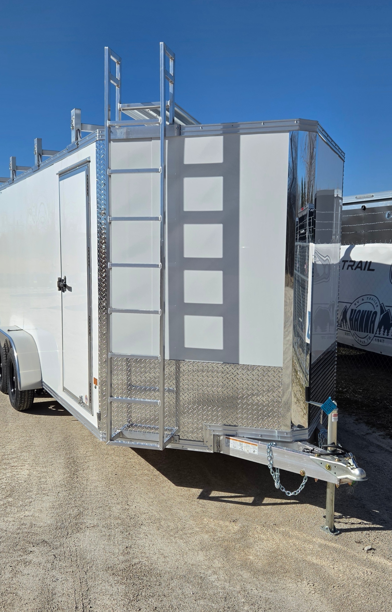 CargoPro Stealth 7 X 16 Aluminum Frame Tandem Axle Ultimate Contractor Cargo Trailer Double Rear Doors, 79 inch Interior Height- White Polycore (C7X16S-UCP-IF)