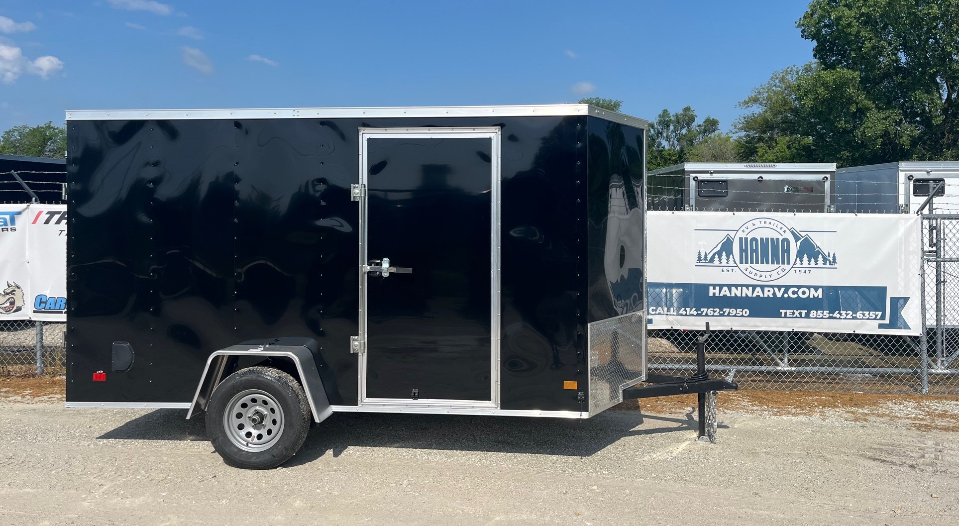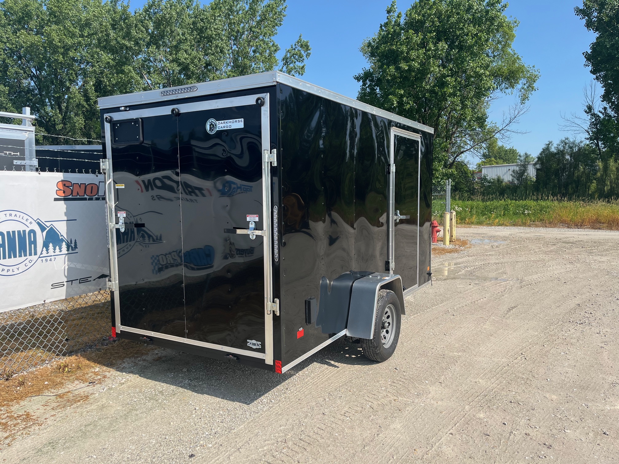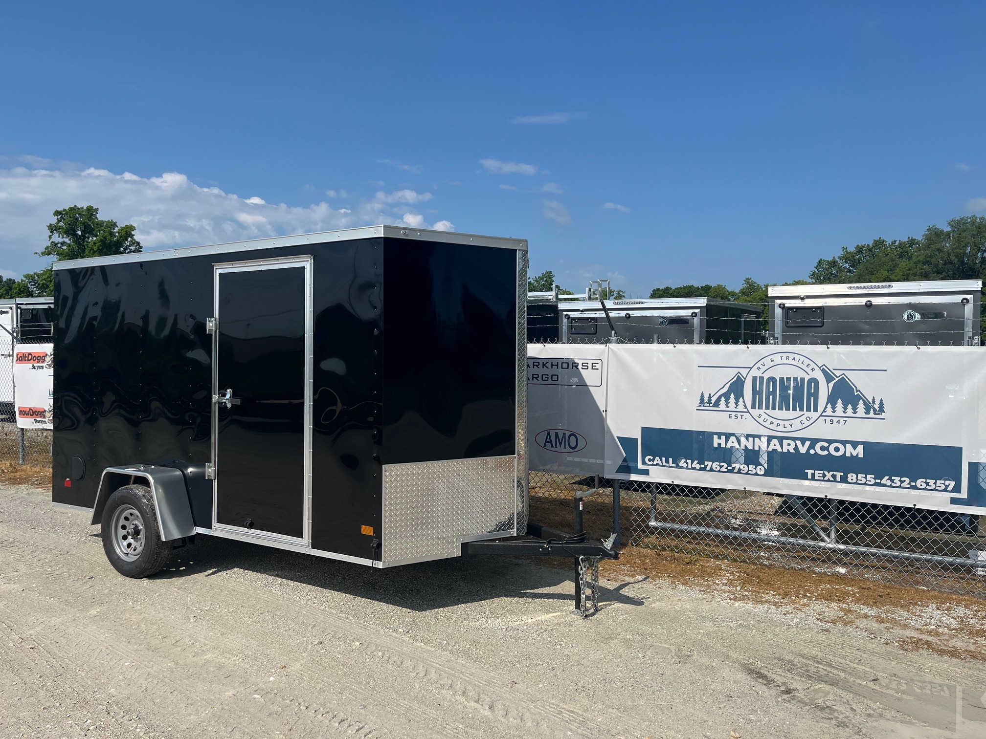 DarkHorse 6X12 Wedge Nose Single Axle Steel Cargo Trailer with Ramp Door, 6" extra Height- 1500 Series - Black