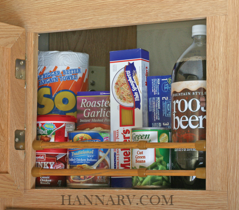 Keep order in your cupboards during travel with these spring loaded bars. They have an oak-finish, and they extend from 10 inches to 17 inches. There are three bars included per package.