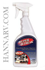 BEST Products 65032 Super Streak Black Streak Remover is a multi-purpose concentrated cleaner for removing black streaks on your RV or Camper. It also works great as a de-greaser and cleaner for engines, tools, fiberglass, tires, grills, awnings, grease spots, sinks, gutters, fireplaces and more. It comes packaged in an easy to use 32-oz. trigger spray bottle.