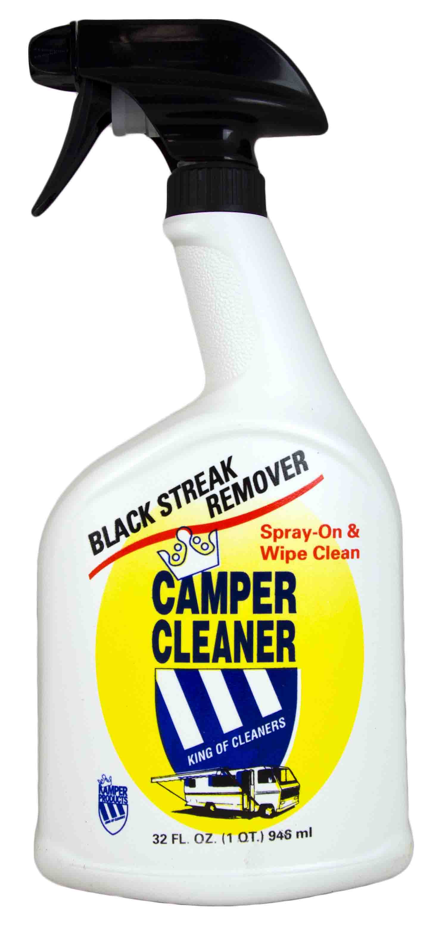 The Kamper Products 10032 Camper Cleaner in a 1 Quart Bottle is specially formulated for the difficult cleaning found on the exterior of recreational vehicles, yet mild enough to use on all interior finishes. It removes the most stubborn stains, black streaks, tree sap, gasoline stains, mildews and soap film. One pint generally cleans the exterior of an average size RV.