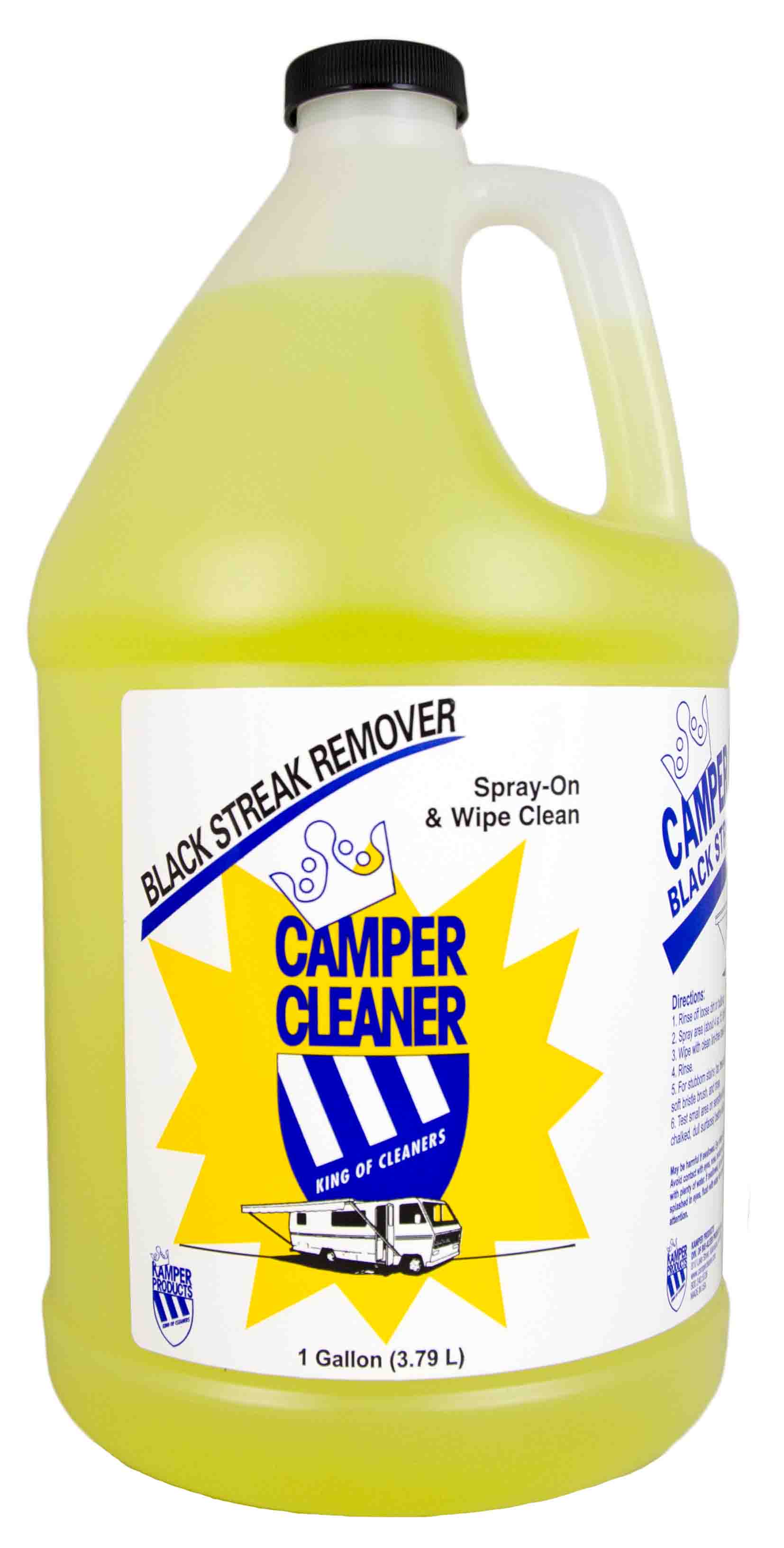 The Bio-Kleen M10064 Camper Cleaner Black Streak Remover- 1 Gallon is specially formulated for the difficult cleaning found on the exterior of recreational vehicles, yet mild enough to use on all interior finishes. It removes the most stubborn stains, black streaks, tree sap, gasoline stains, mildews and soap film. One pint generally cleans the exterior of an average size RV.