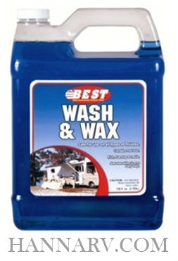 The B.E.S.T. 60128 Wash And Wax Concentrate in a 128 Oz Bottle cleans, shines, and protects your RV in the same time it uses to take for washing alone. The one step wash and wax formula shines without buffing. It is designed for all RV exterior surfaces. It is a concentrated, rich, foaming formula.