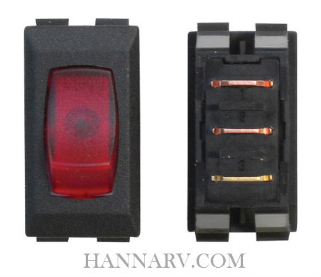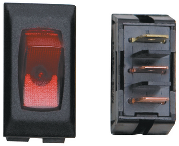 The Diamond A1-31 RV Marine Red/Black ON/OFF Switch is a standard switch for interior lighting, and appliances. The switch illuminates in the "ON" position.