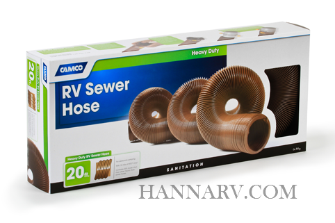 - The Camco 39631 Heavy Duty 20 Foot RV Sewer Hose is 15 mils of brown HTS vinyl